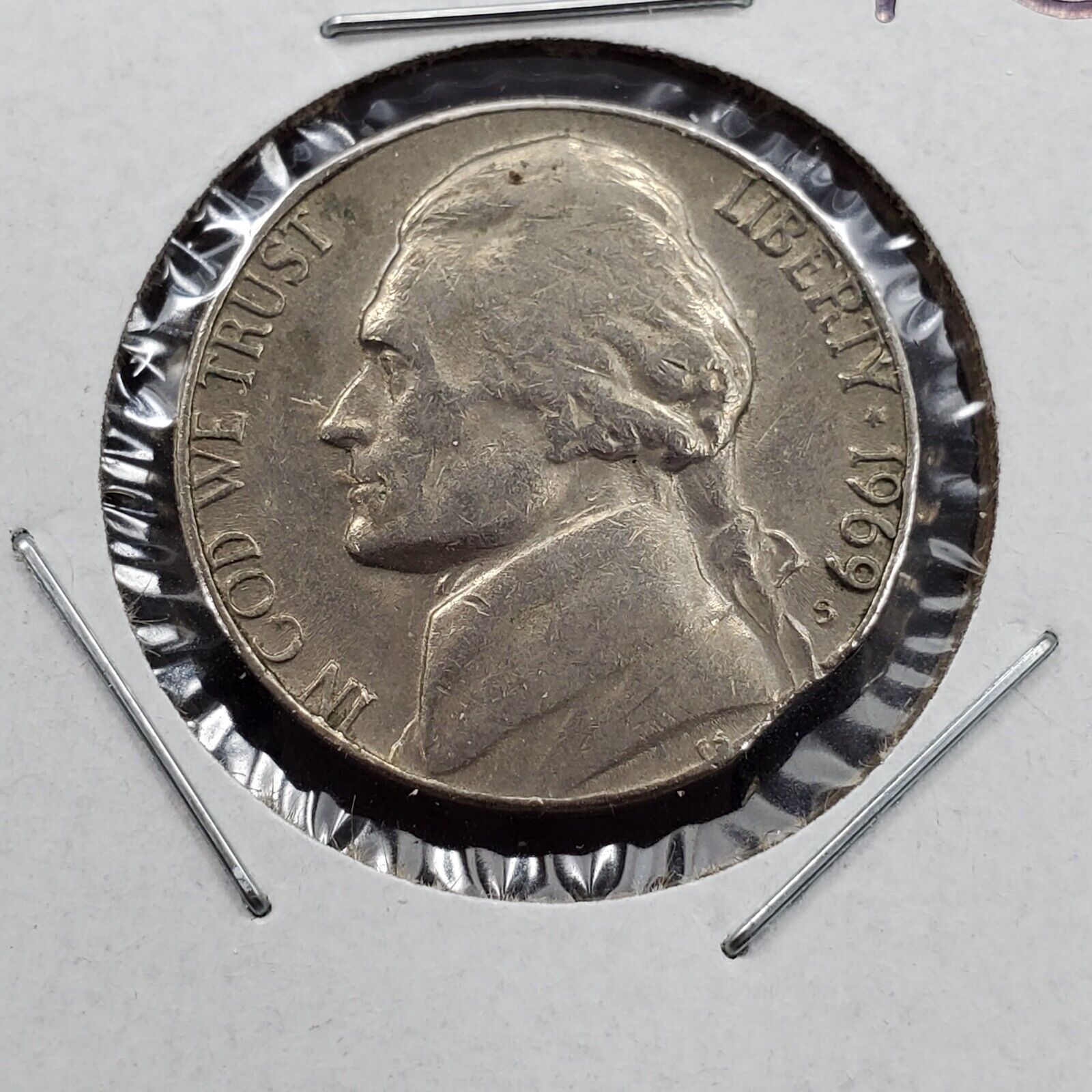 1969 S Jefferson Nickel 5c Clipped Planchet Error Coin Clip Circ