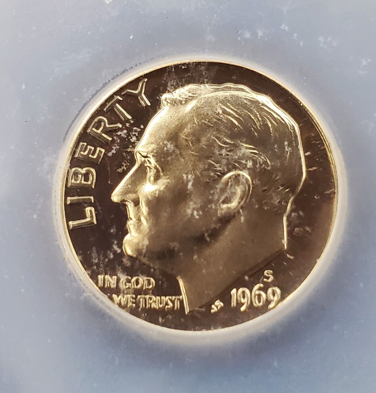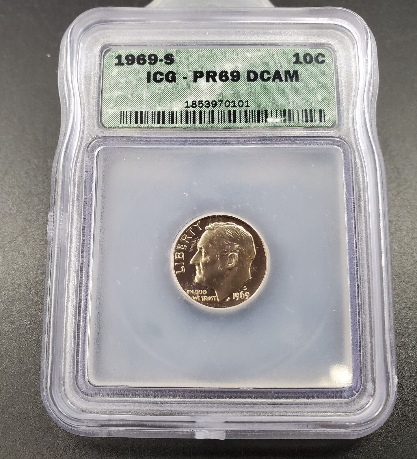 1969 S Roosevelt Clad Dime Proof Coin Vintage ICG PR69 DCAM Deep Cameo Gem