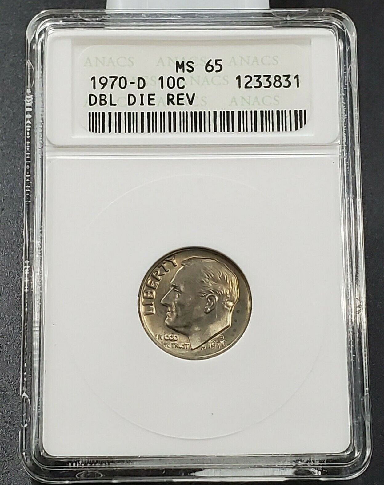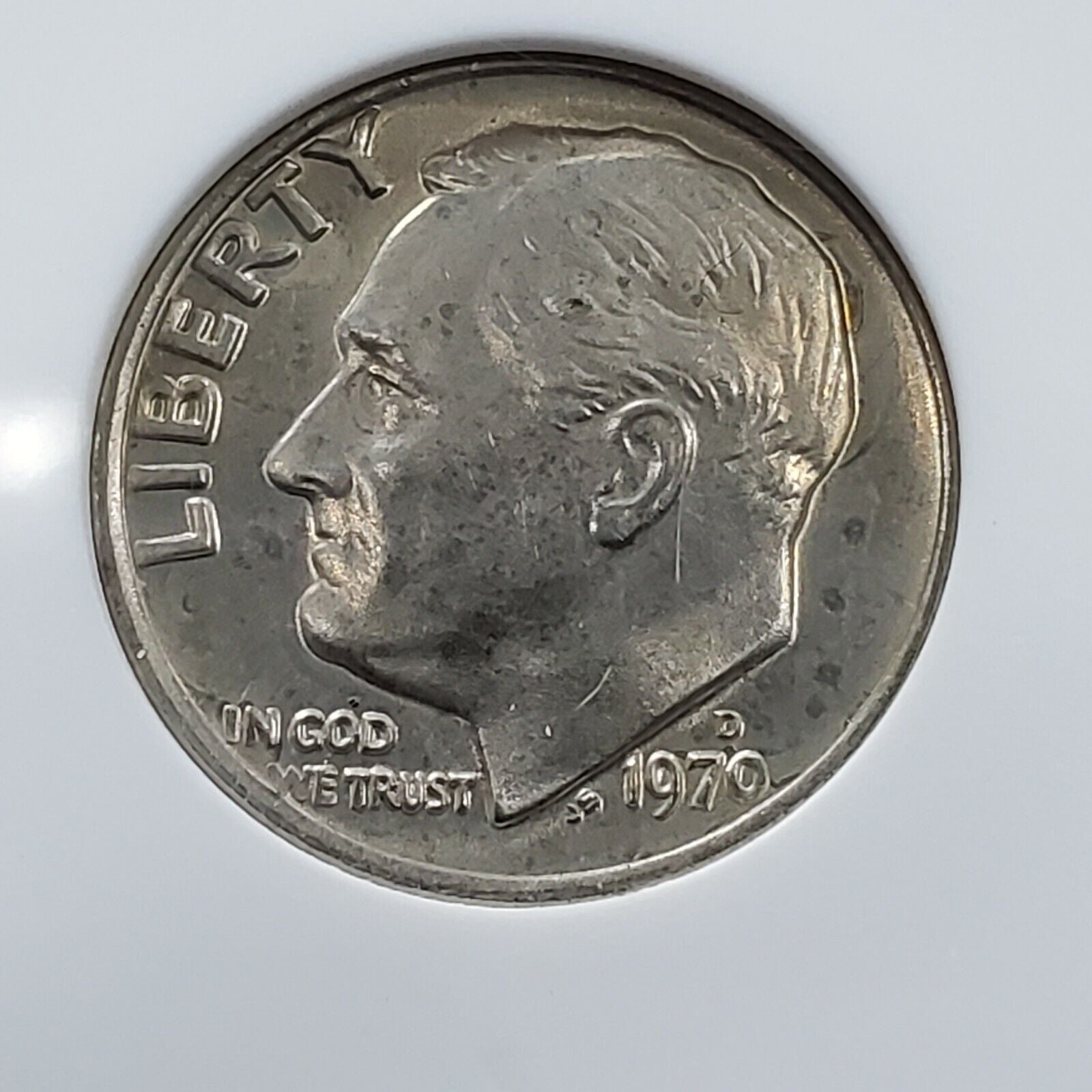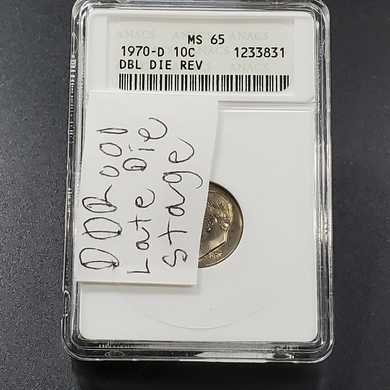1970 D Roosevelt Dime Coin Vintage ANACS MS65 DDR 001 FS-801 Late Die Stage determined by die erosion in addition to the die doubling