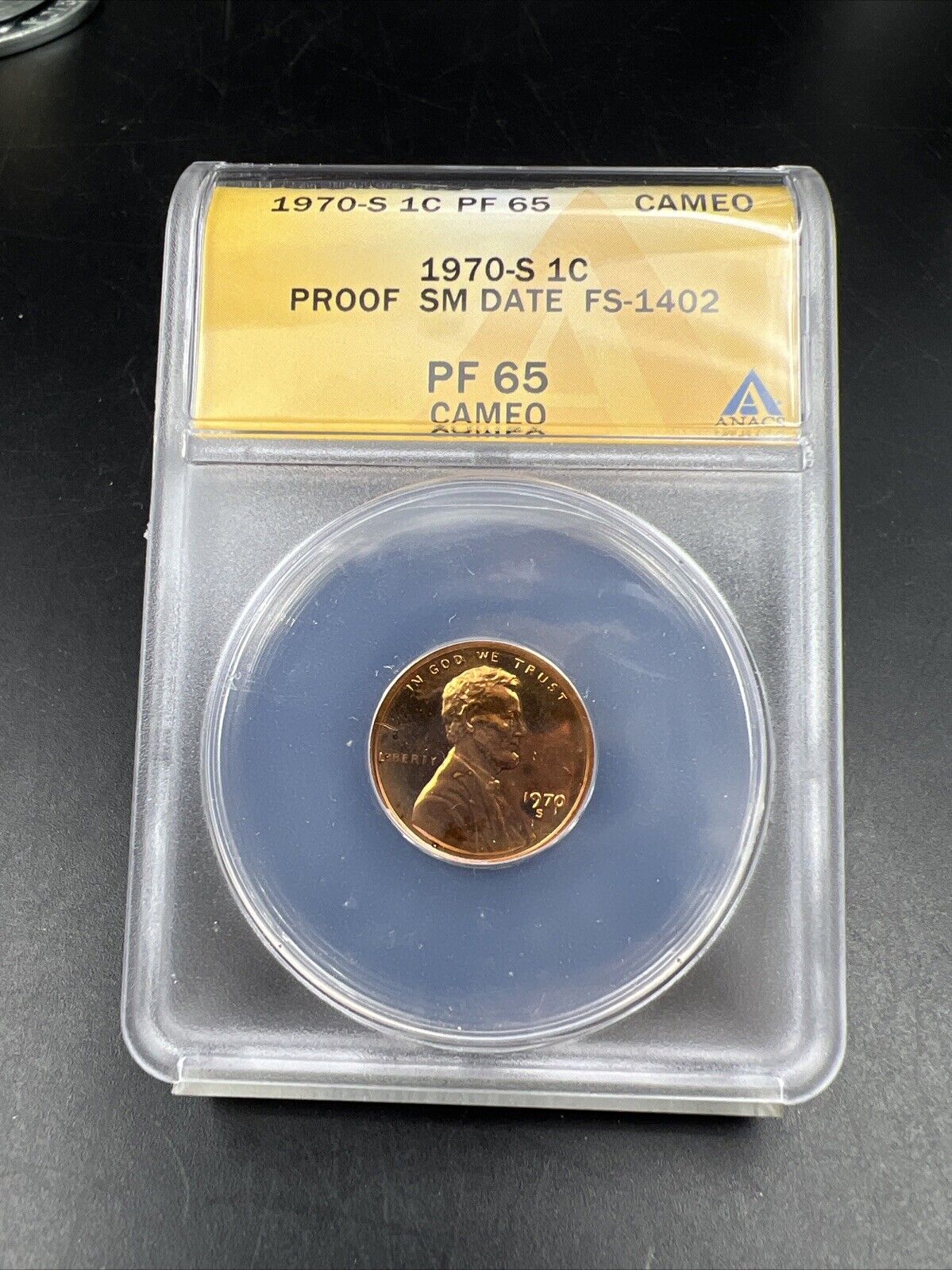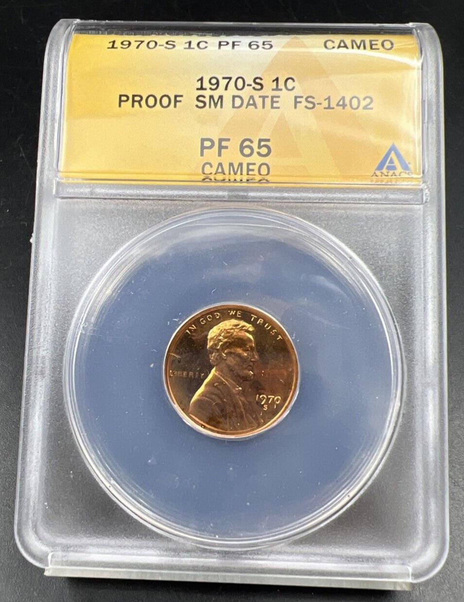 1970 S 1c FS-1402 Small Date Variety Lincoln Memorial Cent Coin PF65 Cameo ANACS