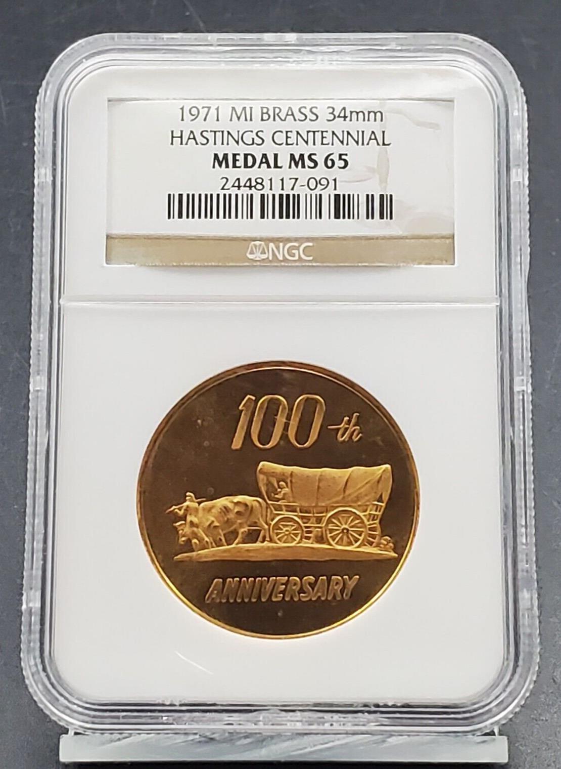 1971 MI Brass 34mm Hastings Centennial NGC Medal MS65
