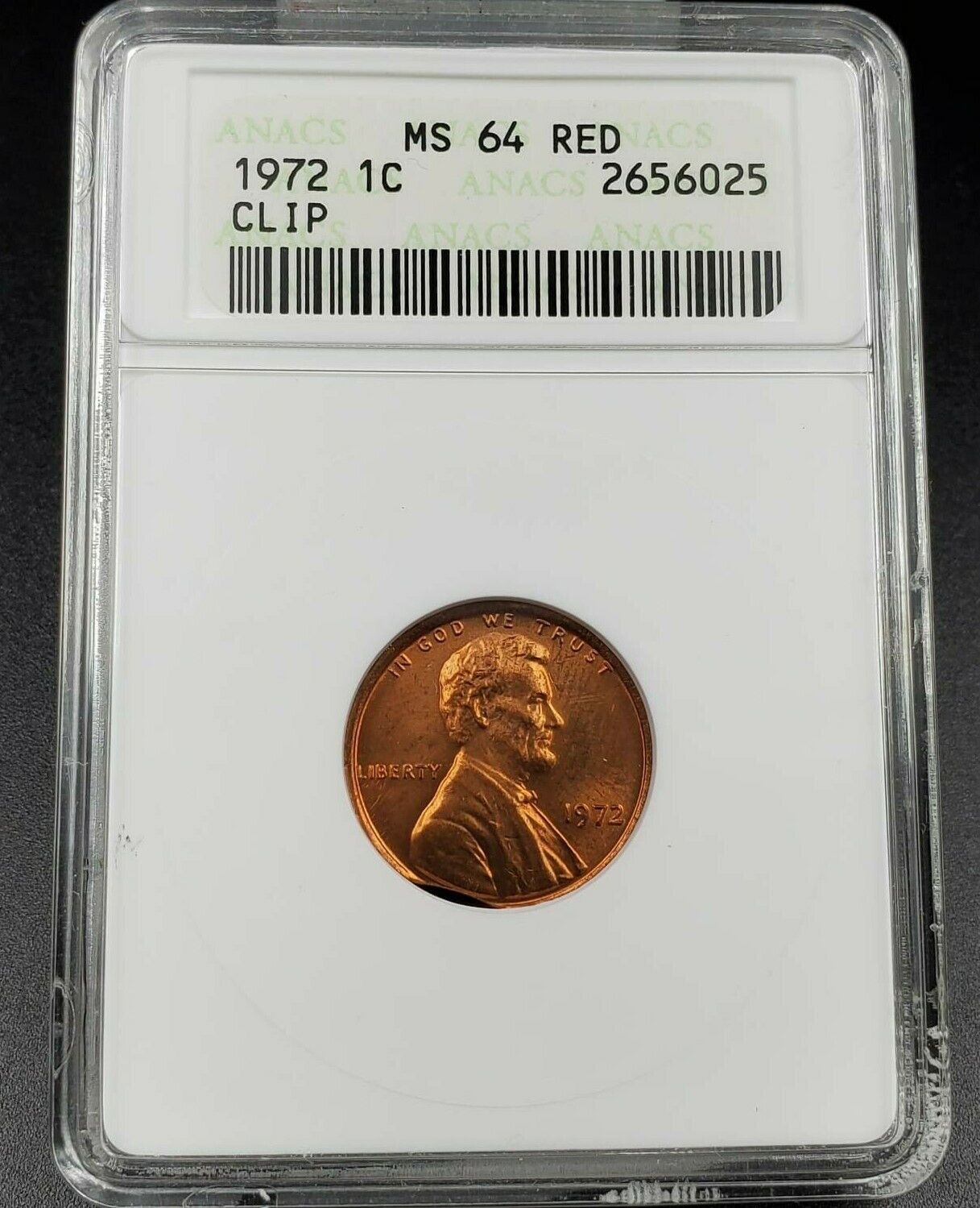1972 P Lincoln Memorial Cent Penny Coin ANACS MS64 Error Clipped Rim Planchet