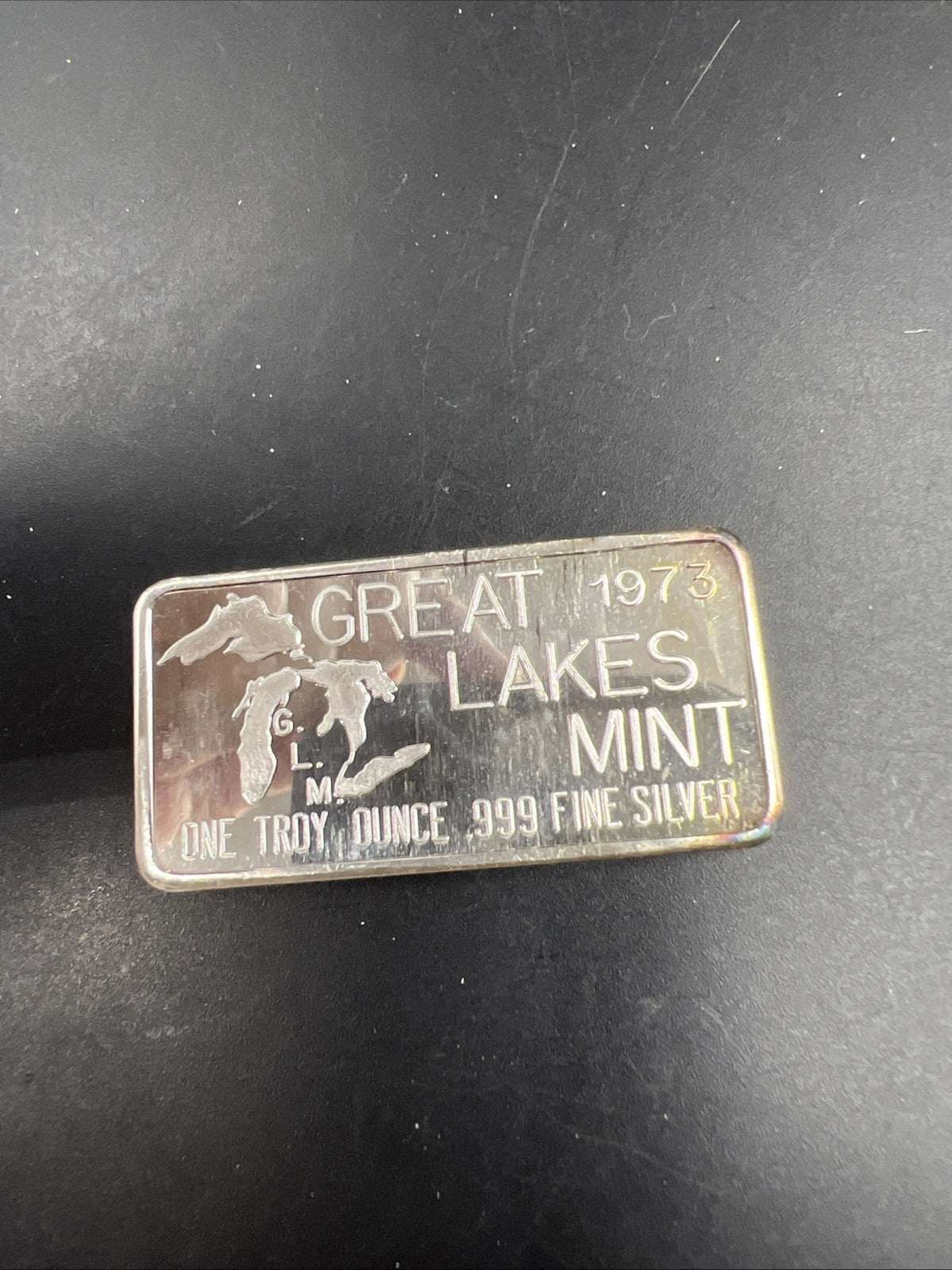 1973 Horse Shoe Horseshoe Good Luck 1 oz .999 Silver Bar Great Lakes Mint UNC #B