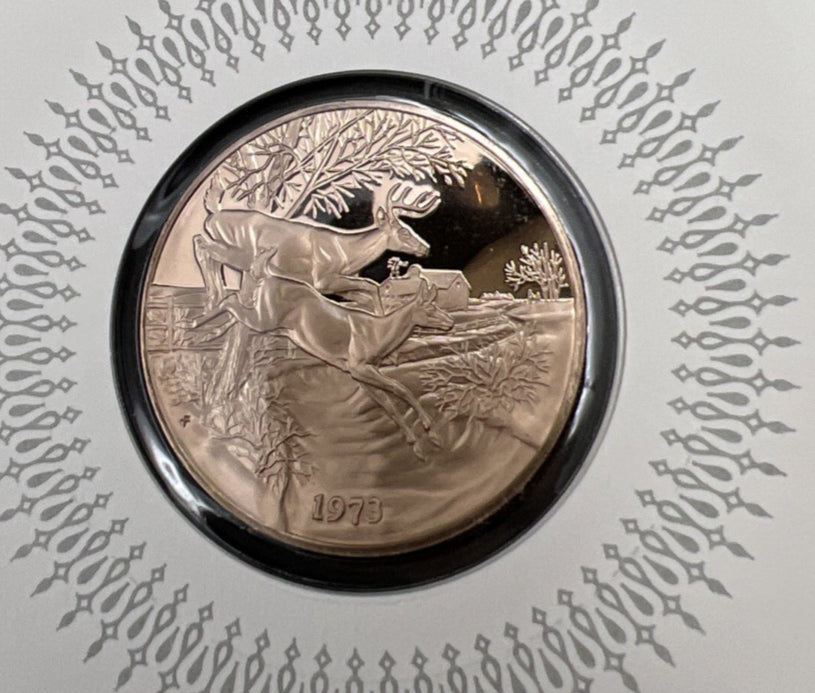 1973 Seasons Greetings Merry Christmas Bronze Medal UNC in Display Card