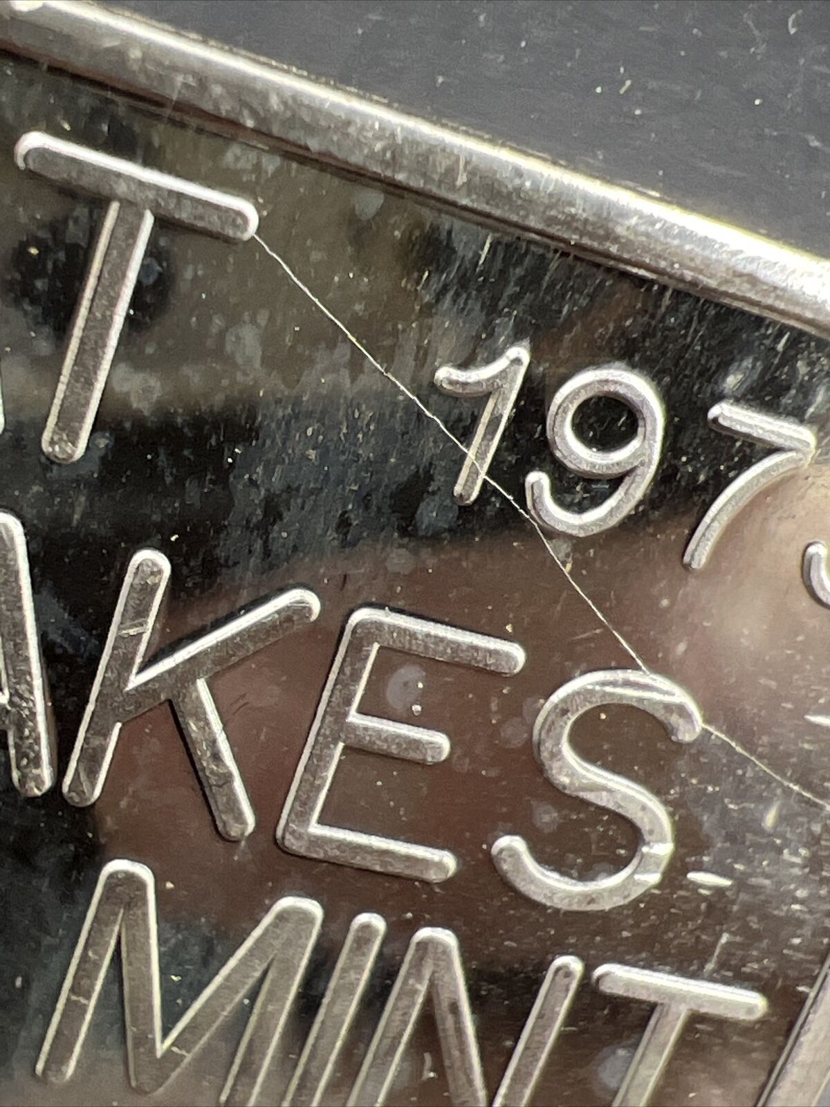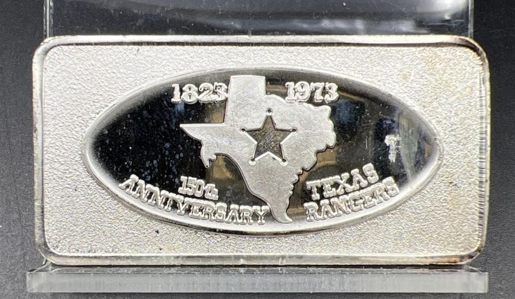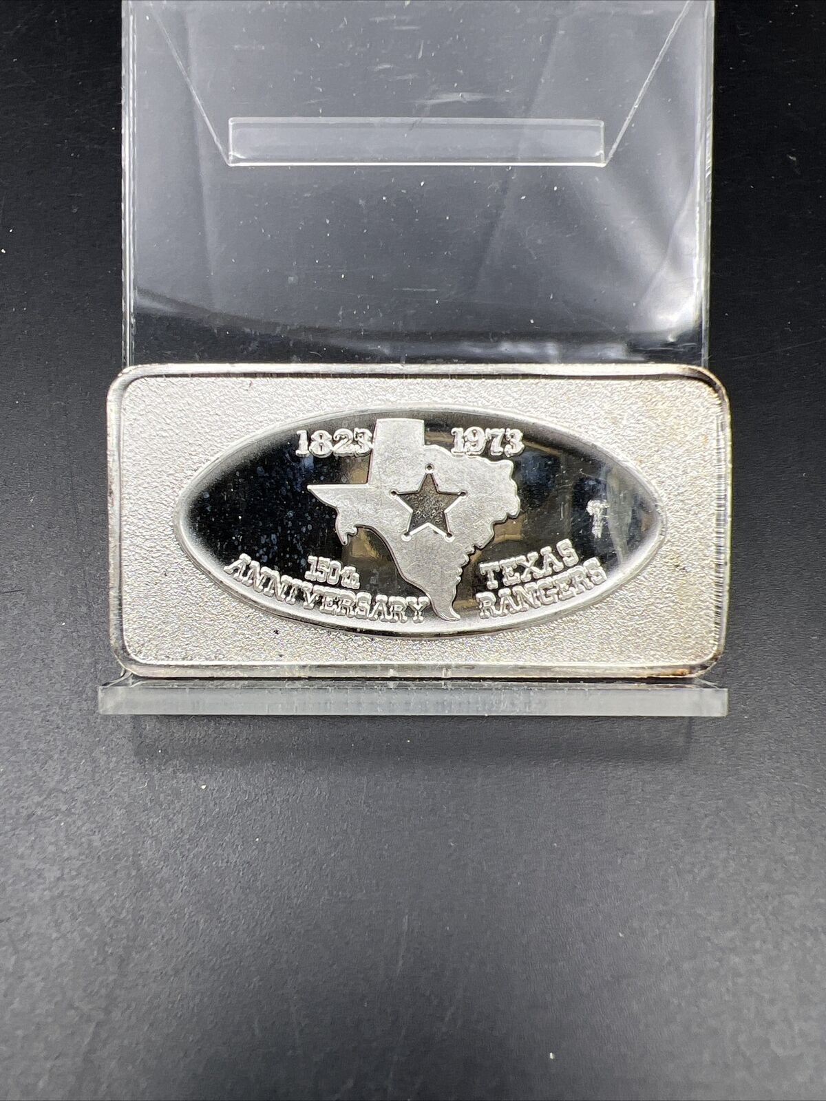 1973 Texas Rangers 150th Ann. 1 Oz Silver .999 Bar w/ Die Crack Error CH UNC