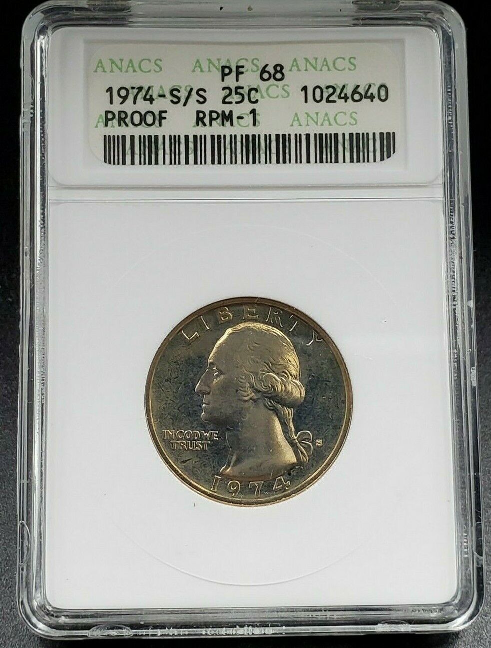 1974 S S/S Washington Quarter Variety Proof Coin RPM 001 DMR-004 PF68 Cam ANACS