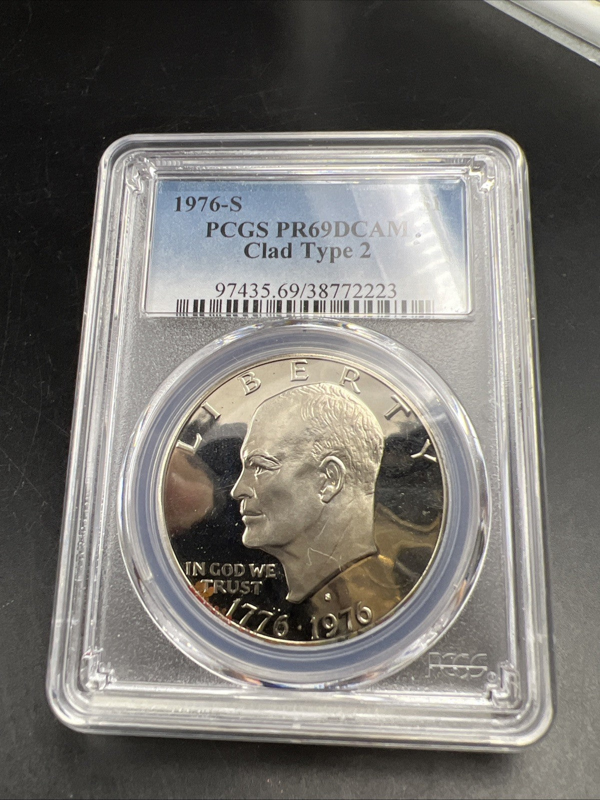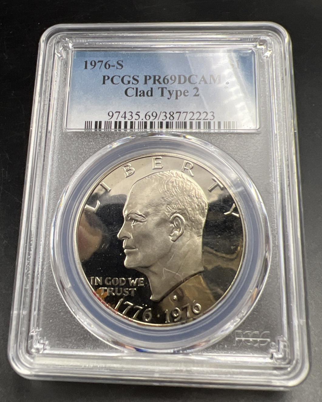1976 S Proof Clad Type 2 Ike Eisenhower Dollar Coin PR69 DCAM Toned Spot #23