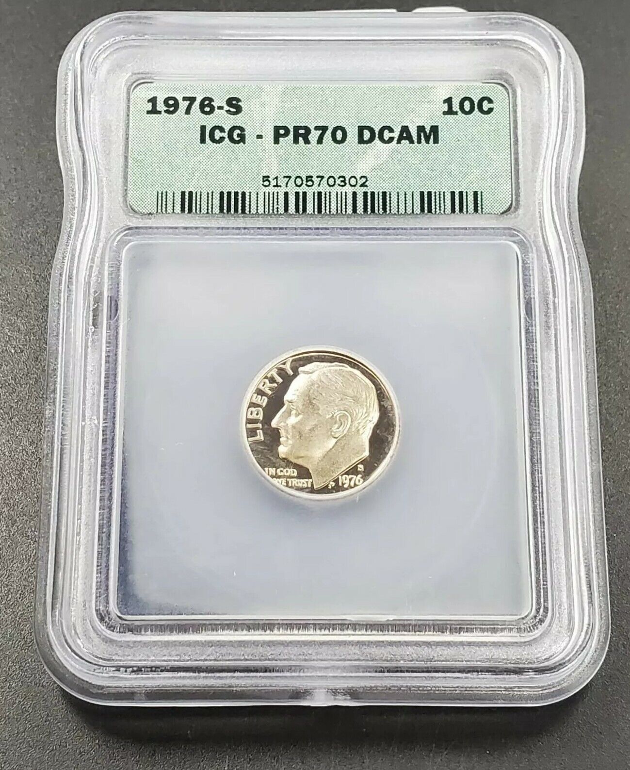 1976 S Roosevelt Clad Dime Proof Coin Vintage ICG PR70 DCAM Deep Cameo Gem 2
