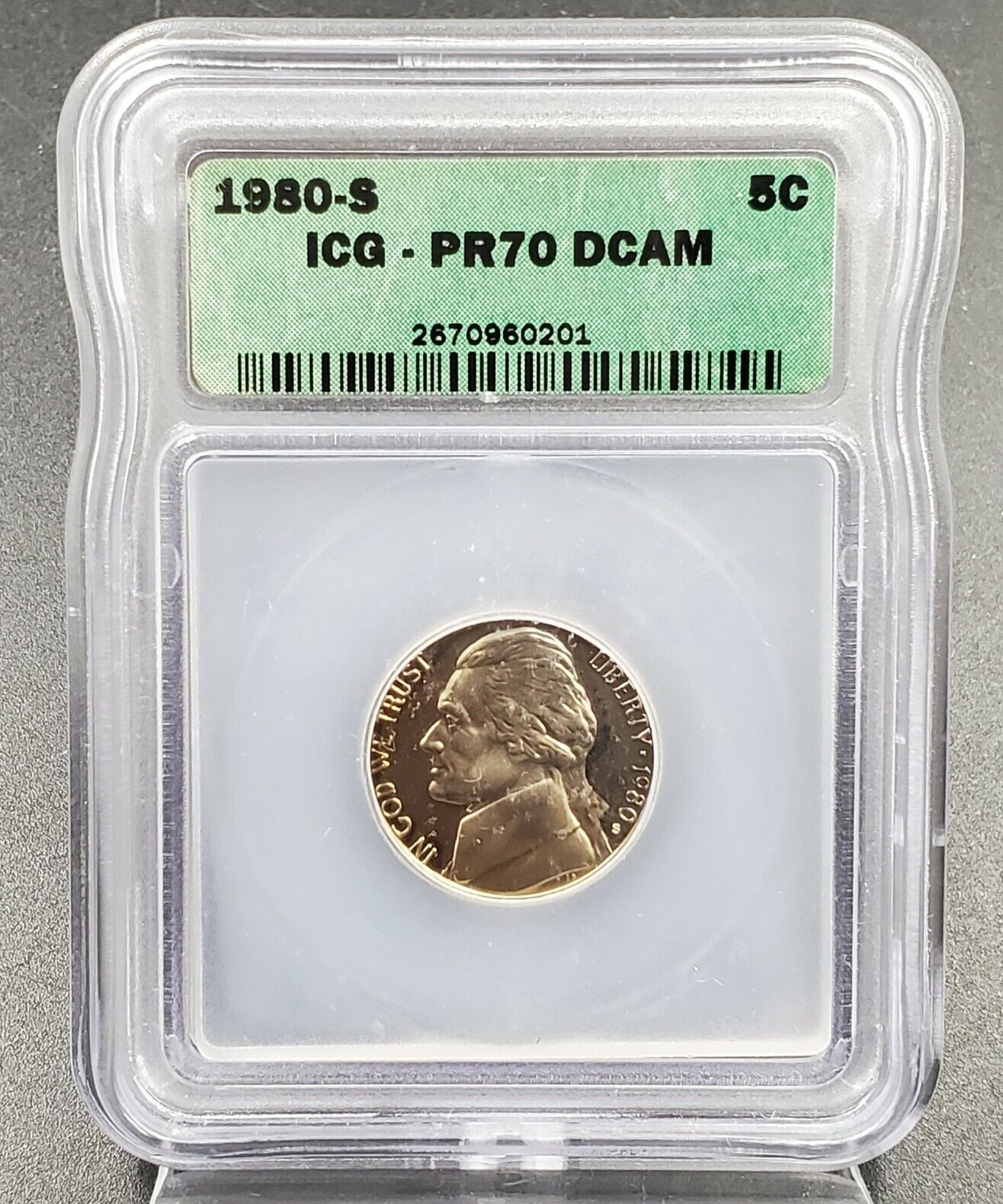 1980 S Proof Jefferson Nickel Coin ICG PR70 DCAM Deep Cameo Variety #2