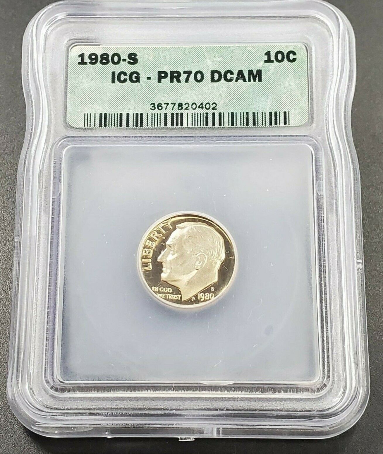 1980 S Roosevelt Clad Dime Proof Coin Vintage ICG PR70 DCAM Deep Cameo Gem