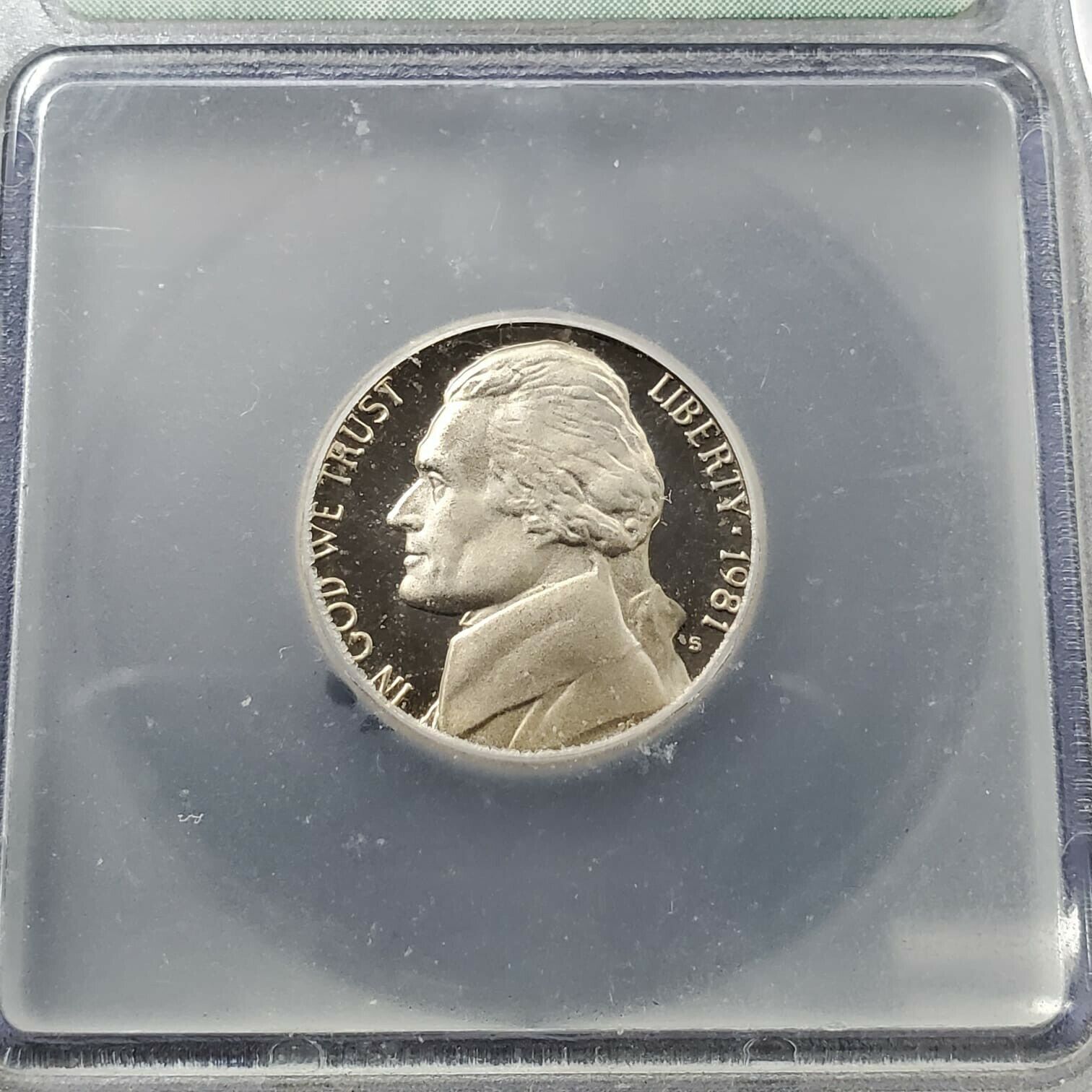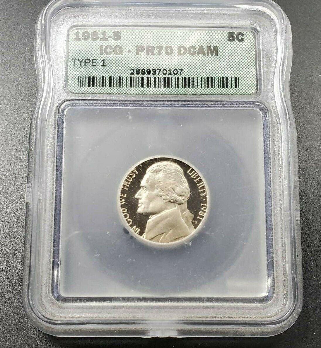 1981 Type 1 S Proof Jefferson Nickel Coin ICG PR70 DCAM Deep Cameo Variety