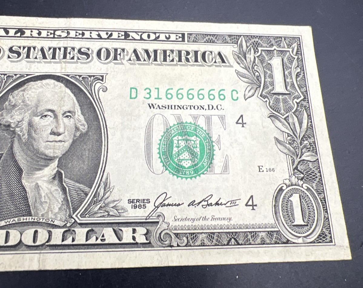 1985 $1 FRN VF Double Devil's Serial Repeater Number #31666666