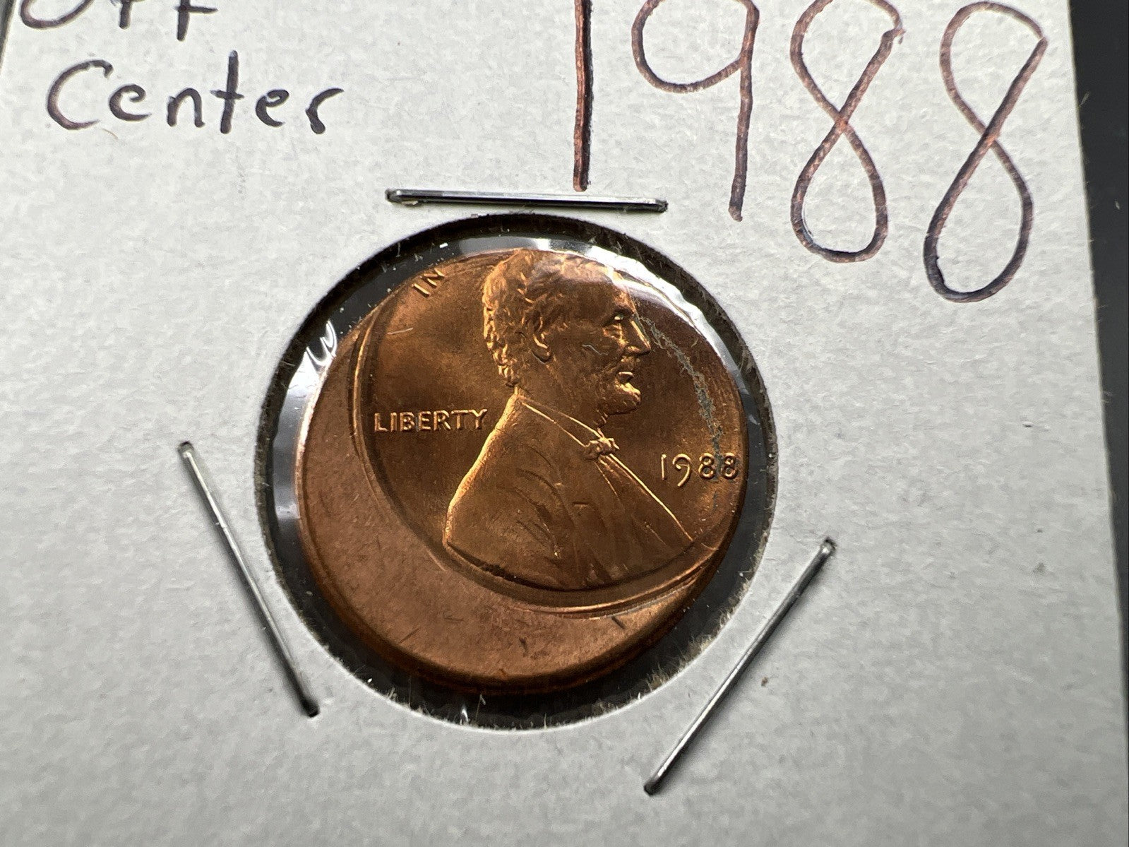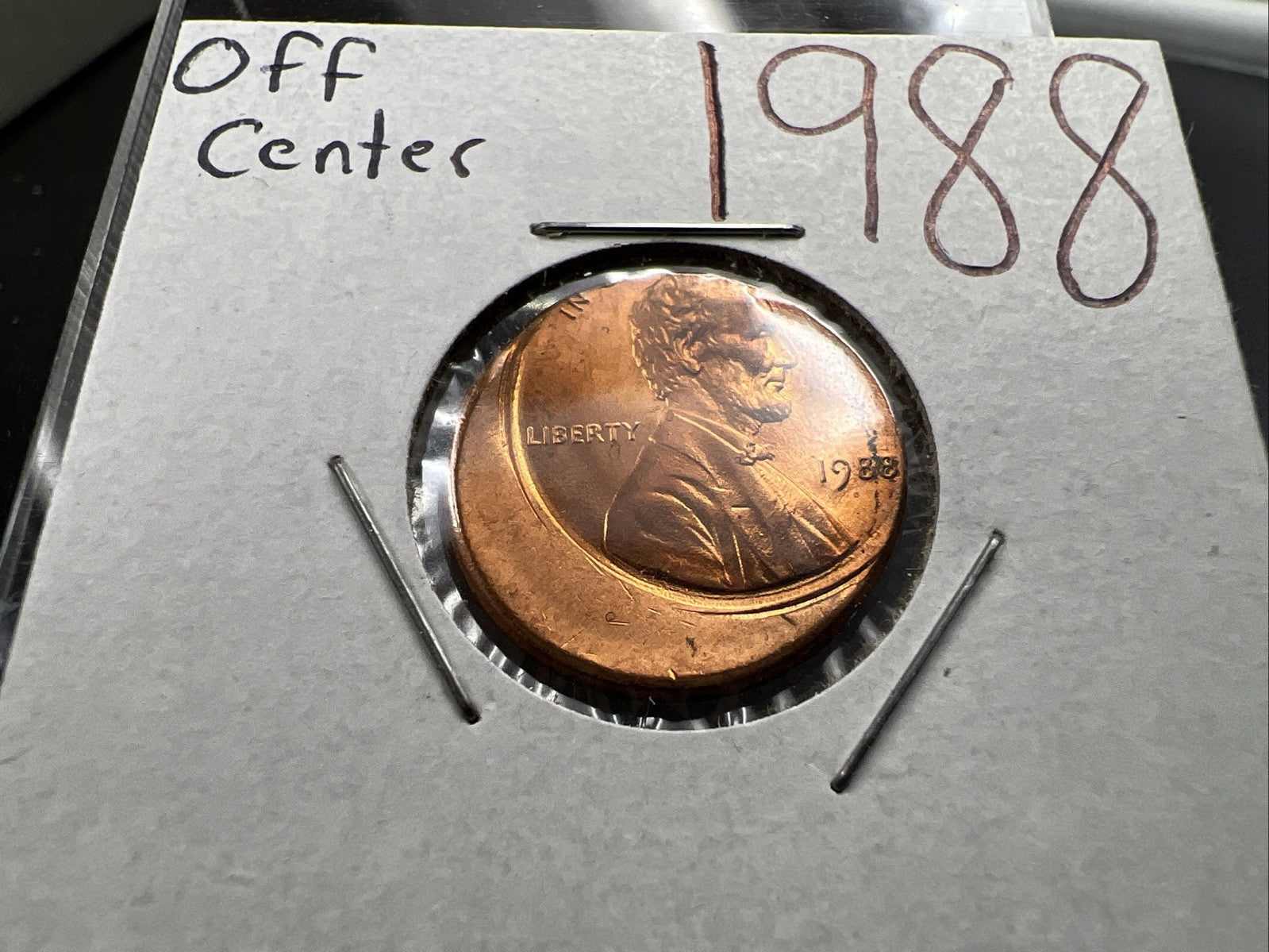 1988 1c Lincoln Memorial Cent Penny 33% Off Center Error Choice UNC SKU#A