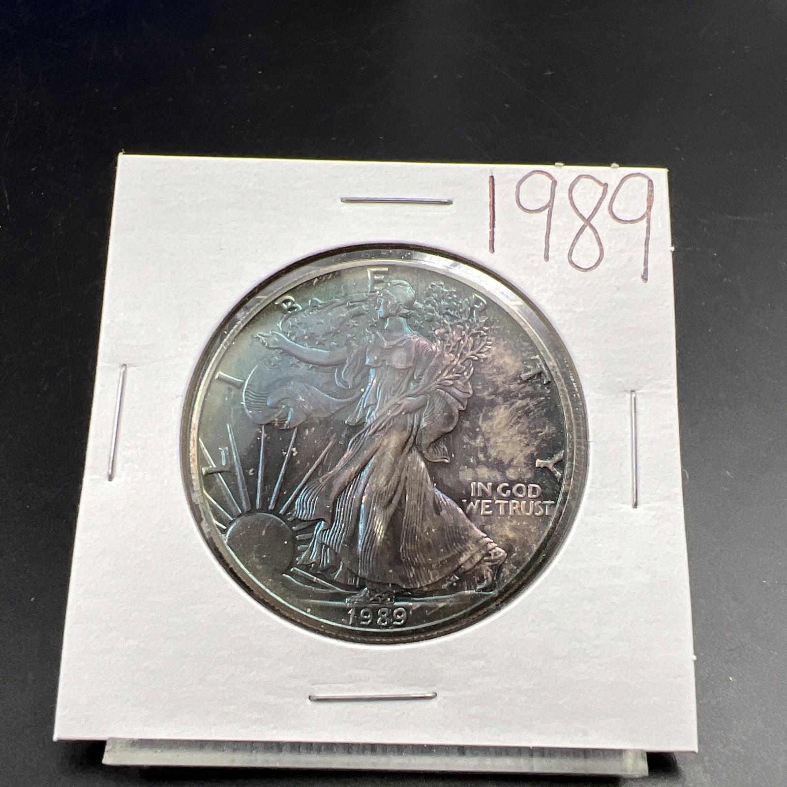 1989 1 Oz ASE American Silver Eagle Coin Gem BU UNC PQ Blue Toning Toner SK#B