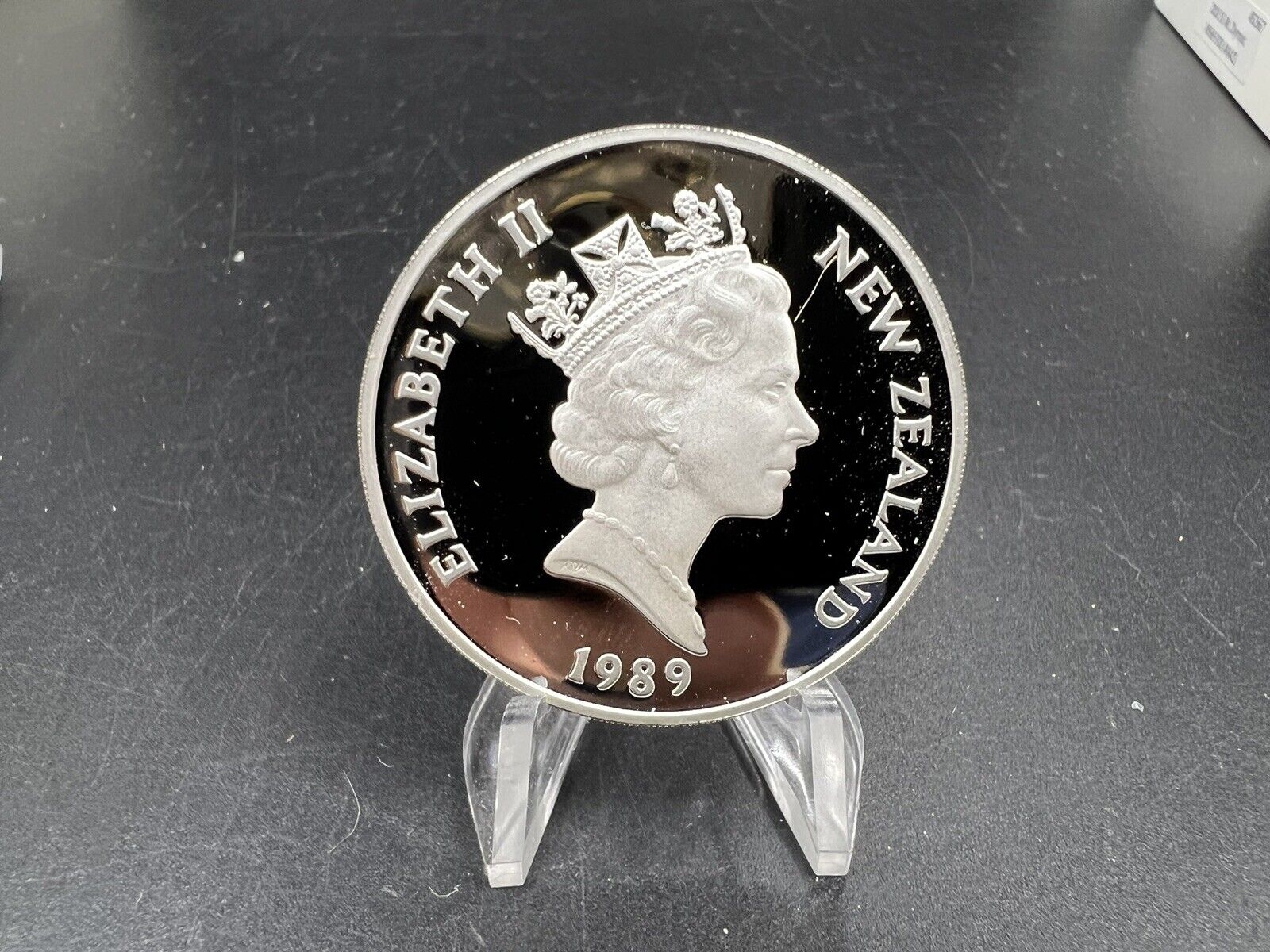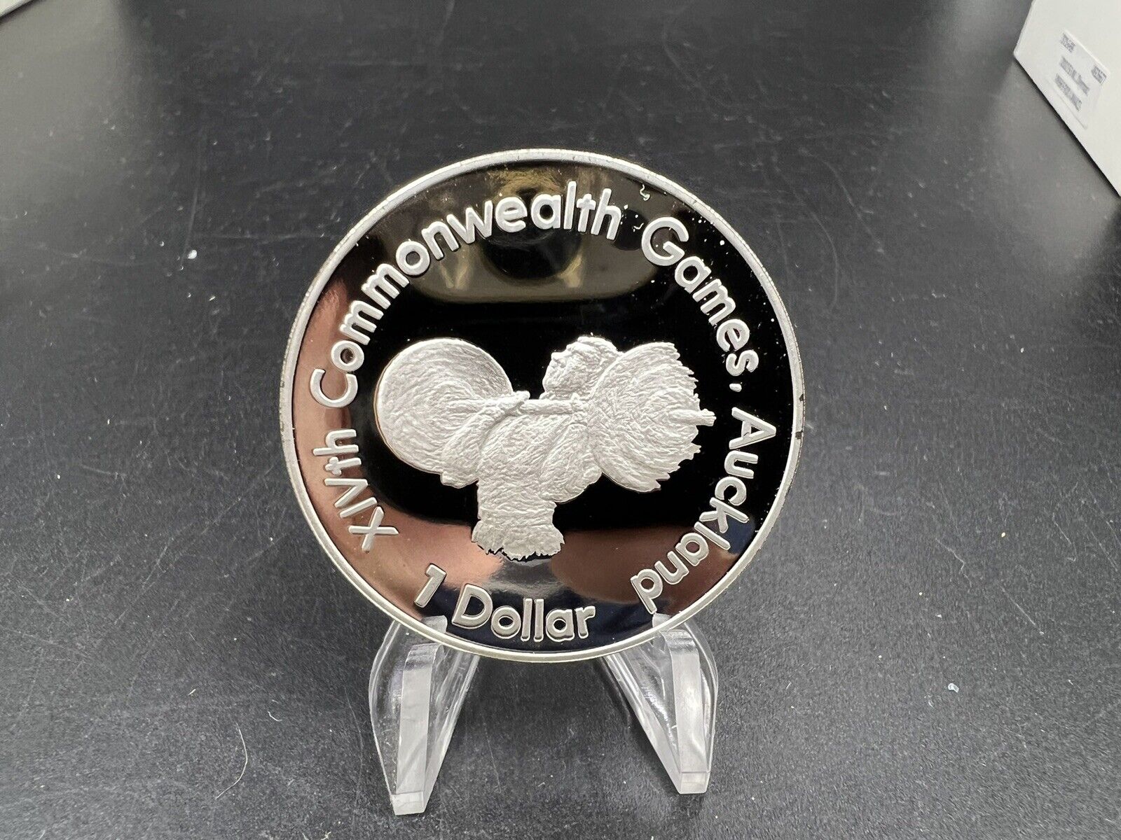 1989 Auckland commonwealth games gem proof New Zealand silver coin Weight Lifter