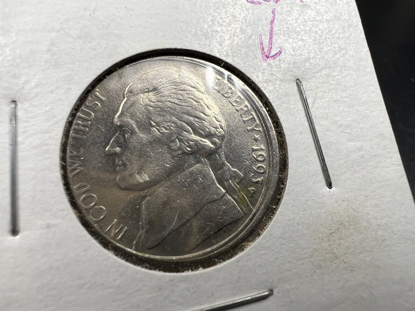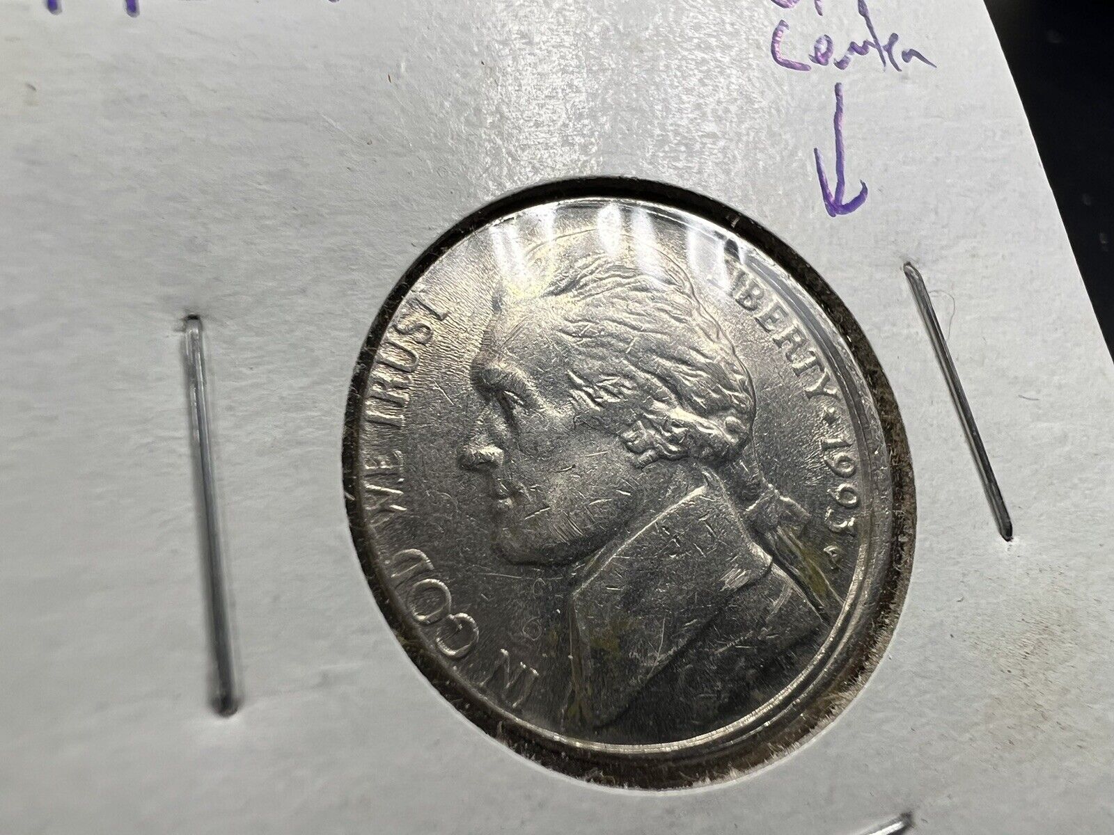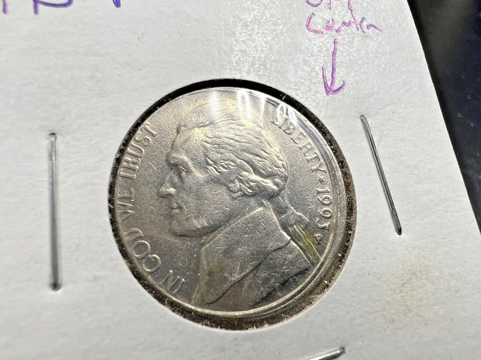 1993 P Jefferson Nickel 5c Coin Misaligned Obverse Die Error VF / XF Circ