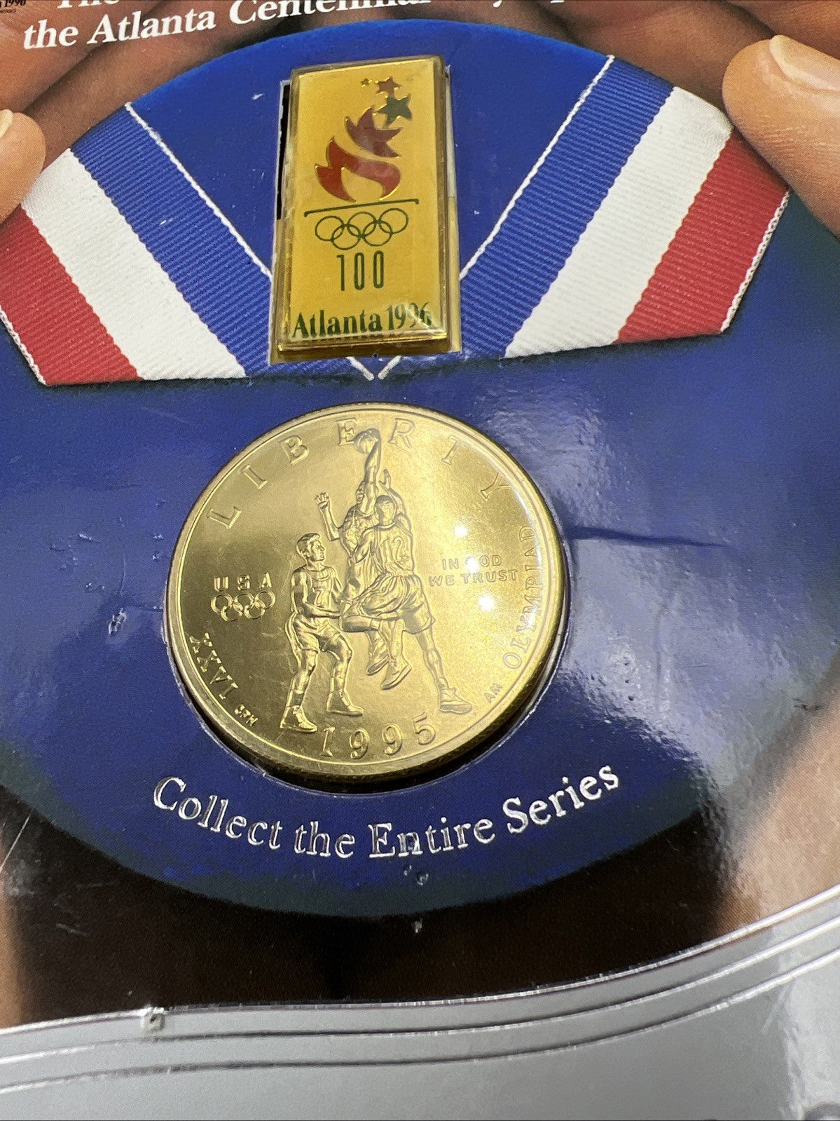 1995 Atlanta Olympics Basketball Commemorative Half dollar Coin Pin set Toner #A