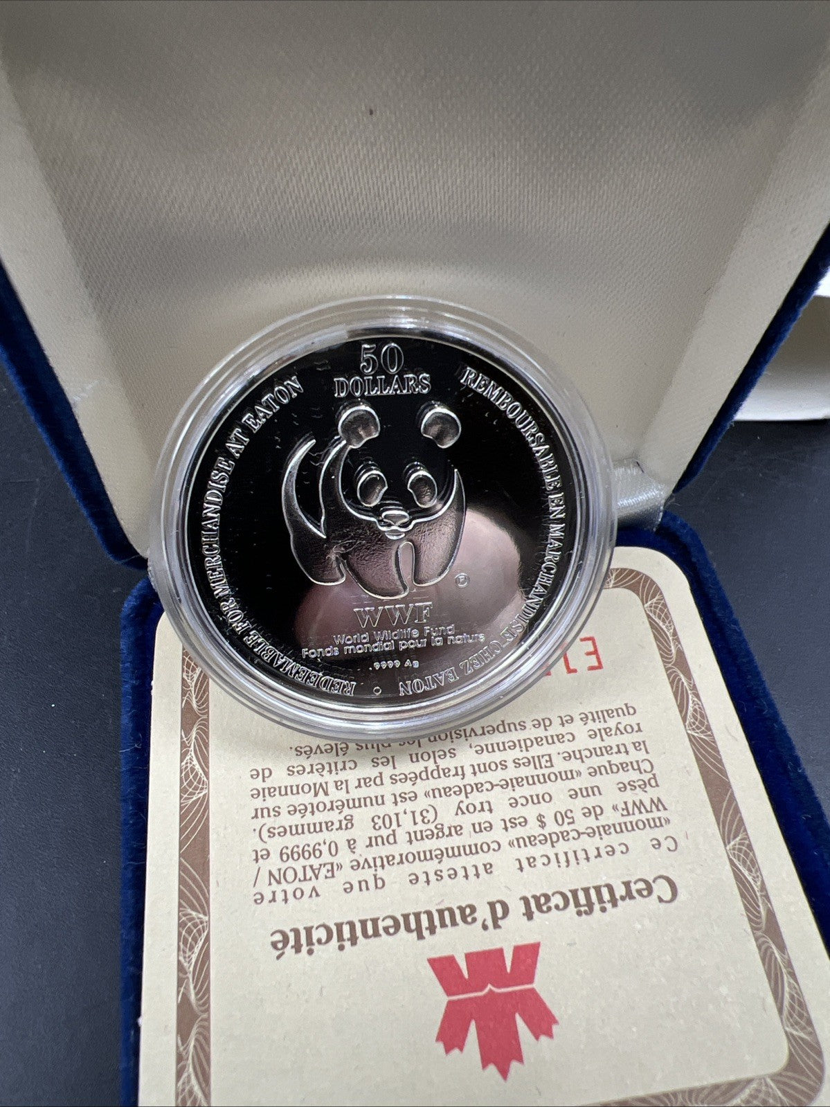 1995 Canada $50 1 oz Silver Panda Coin WWF World Wildlife Foundation