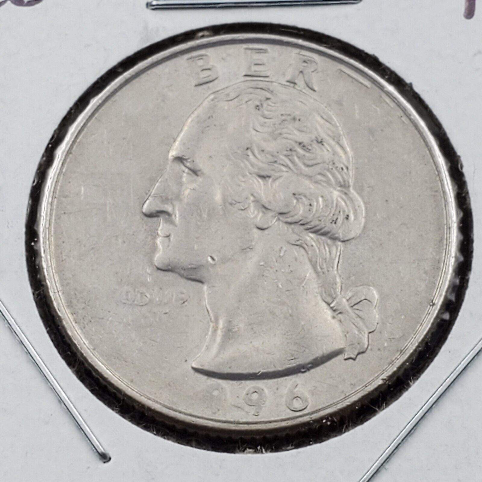 1996 P 25c Washington Clad Quarter Grease Filled Die Error w/ Strike doubling XF