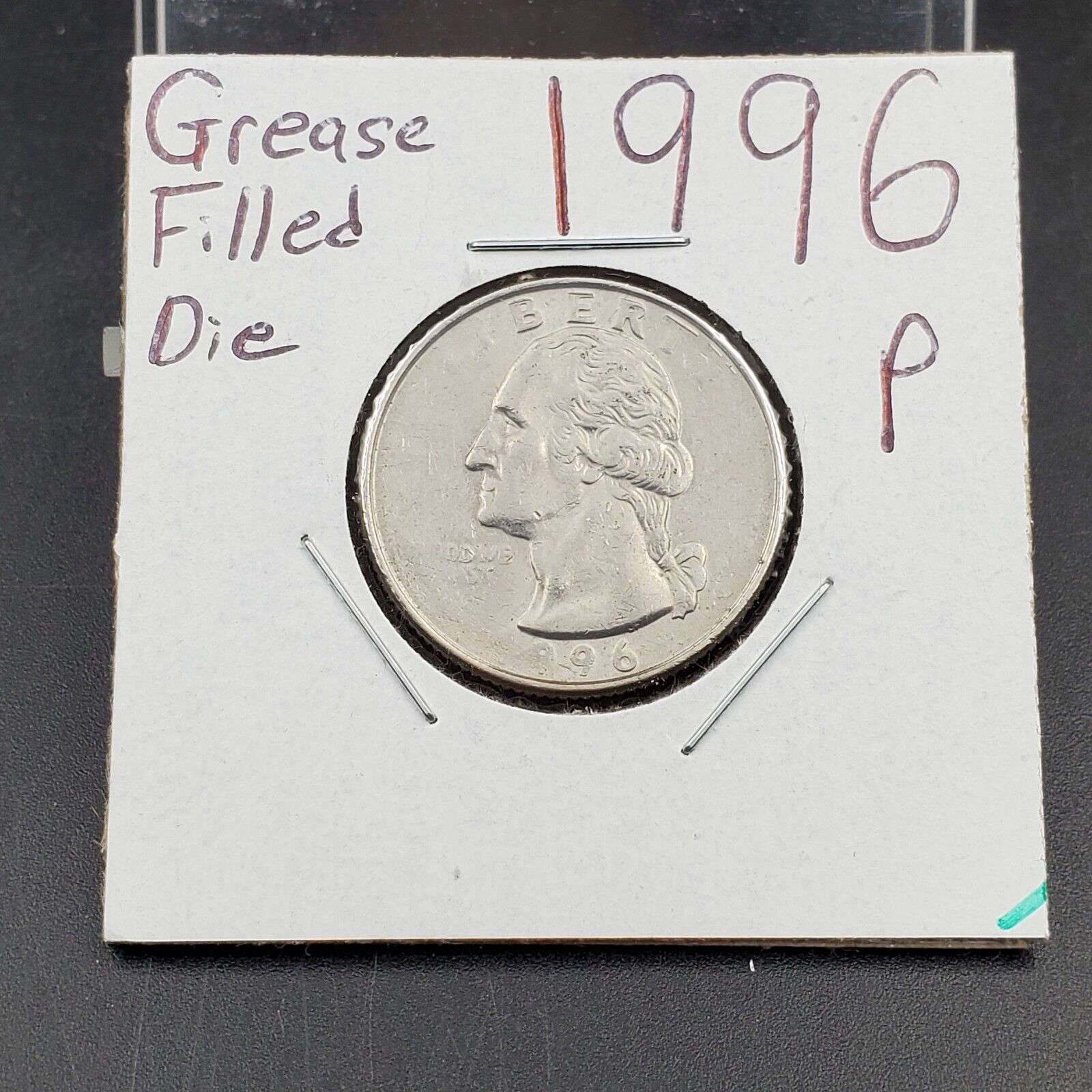 1996 P Washington Quarter Grease Filled Die Struck Thru Error & Strike double XF