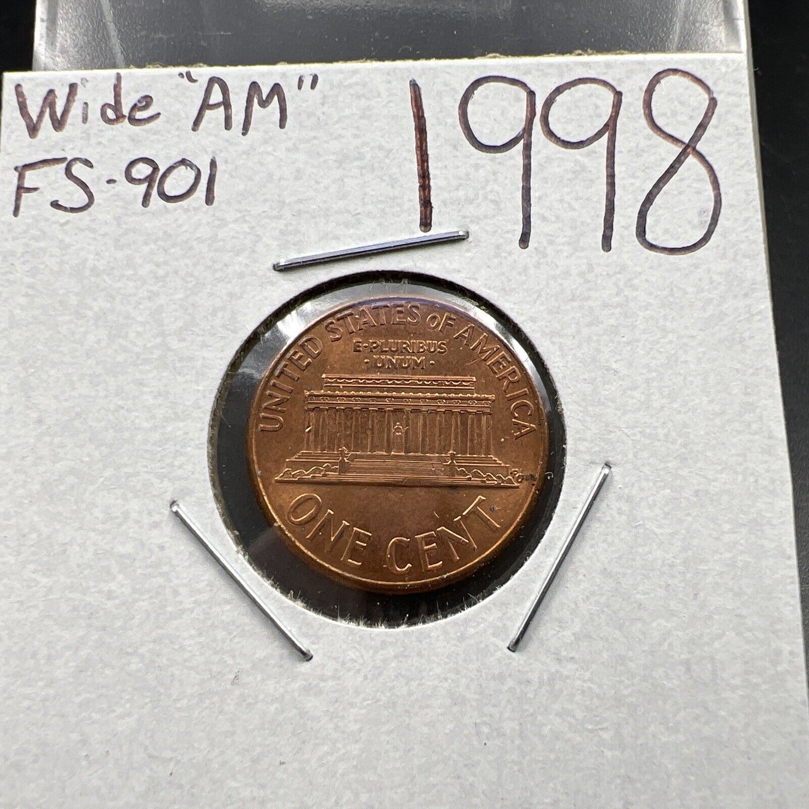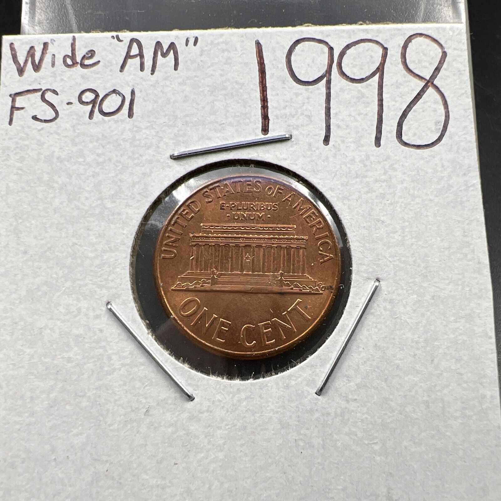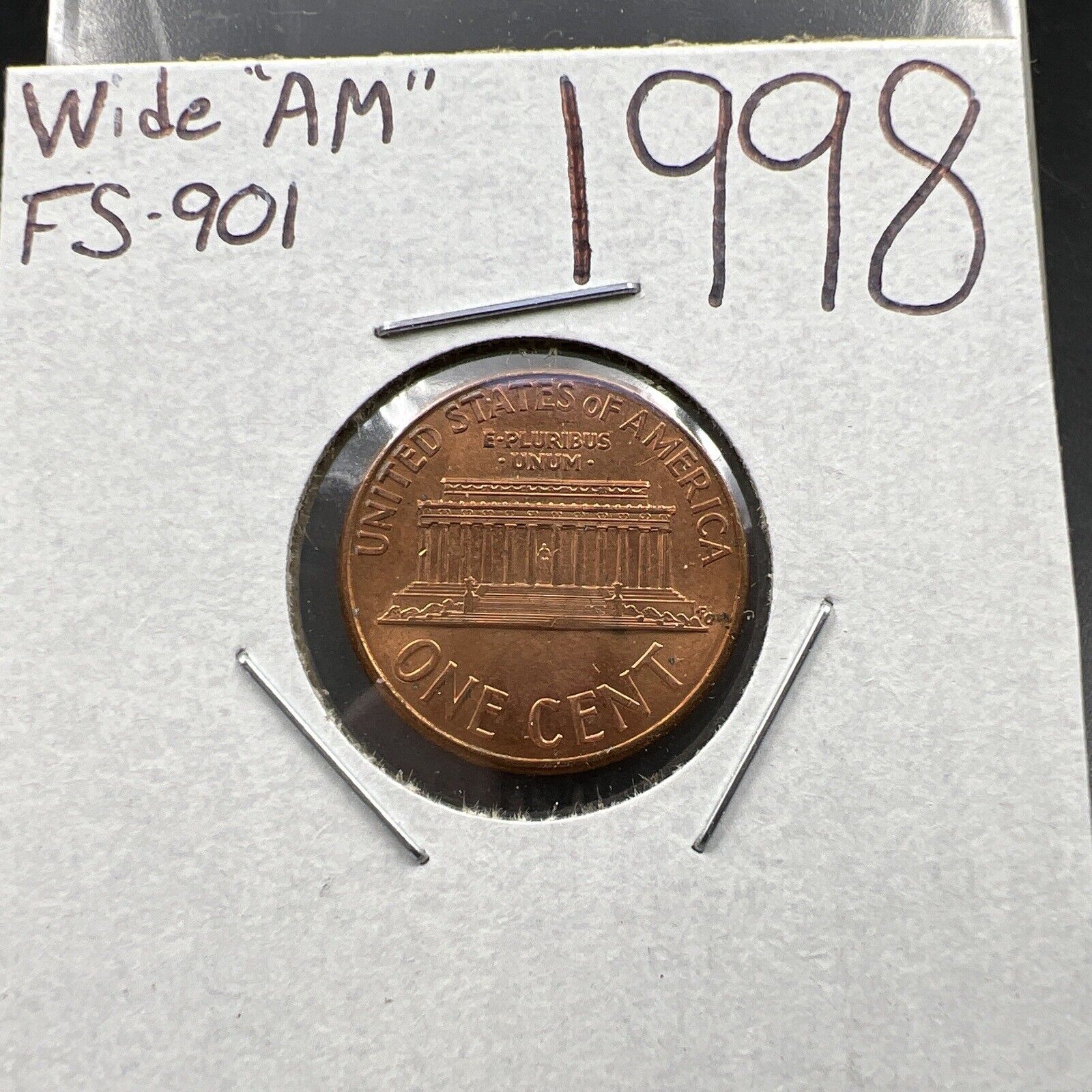 1998 1c Lincoln Memorial One Cent Penny Wide AM Variety BU UNC FS-901 #