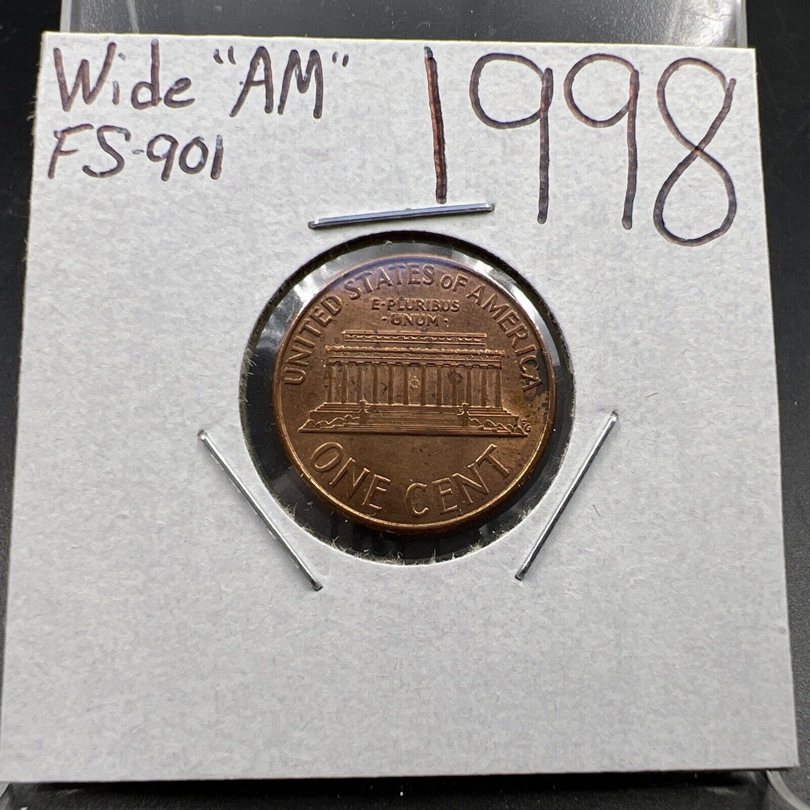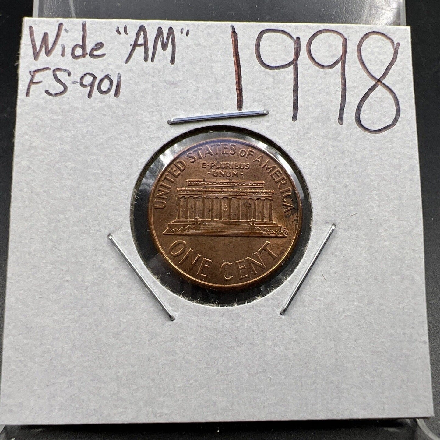 1998 1c Lincoln Memorial One Cent Penny Wide AM Variety CH AU FS-901 #A