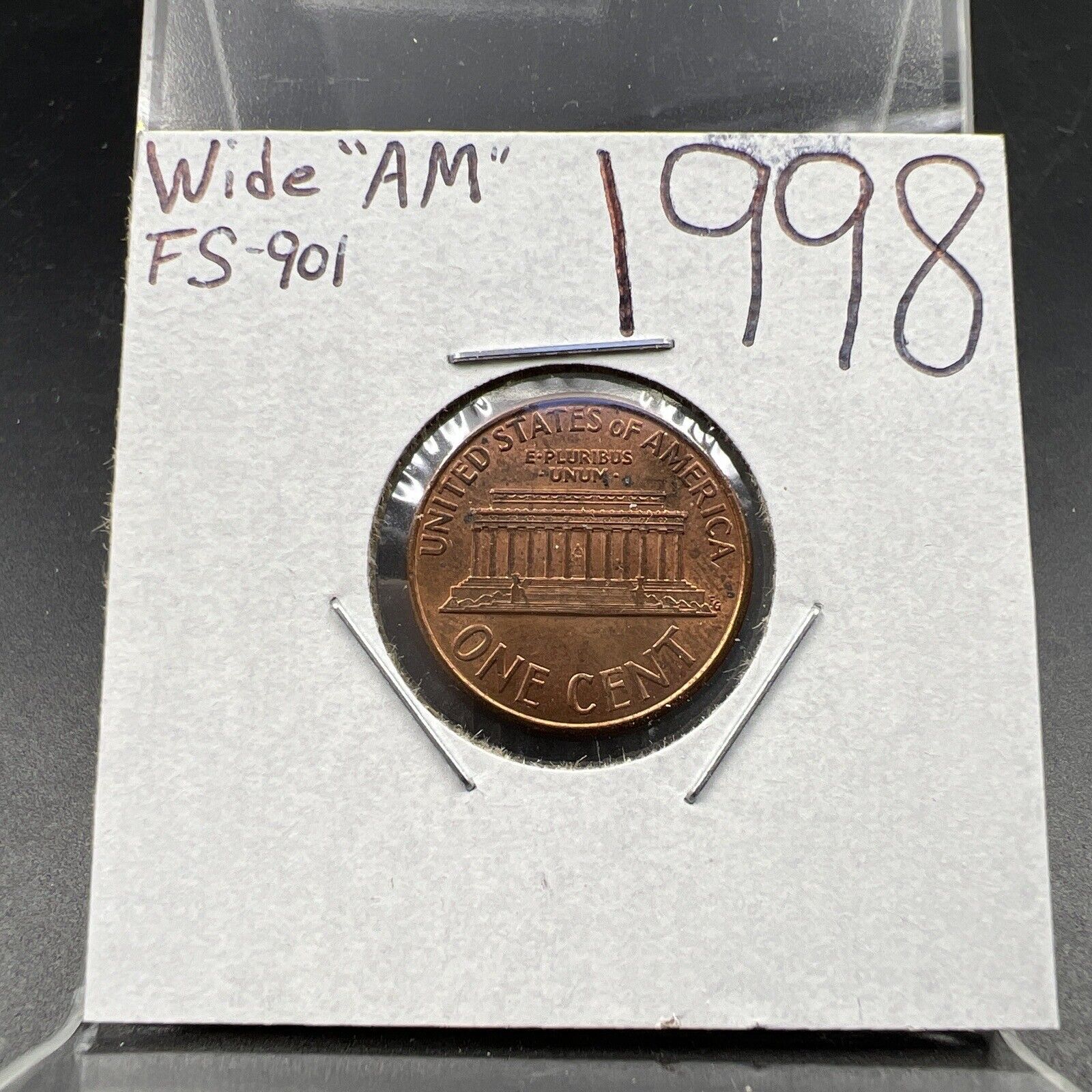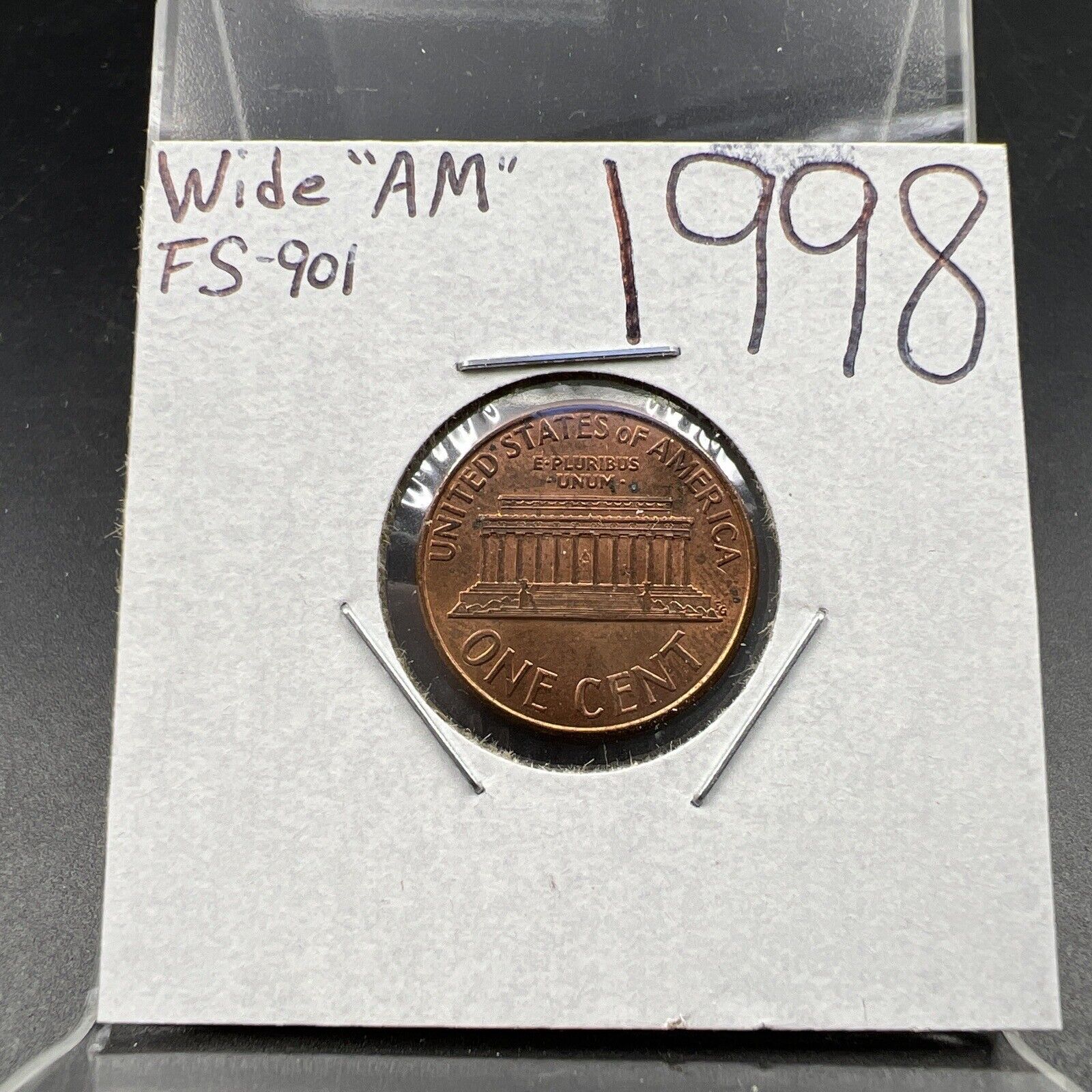 1998 1c Lincoln Memorial One Cent Penny Wide AM Variety XF EF Circ FS-901 #C