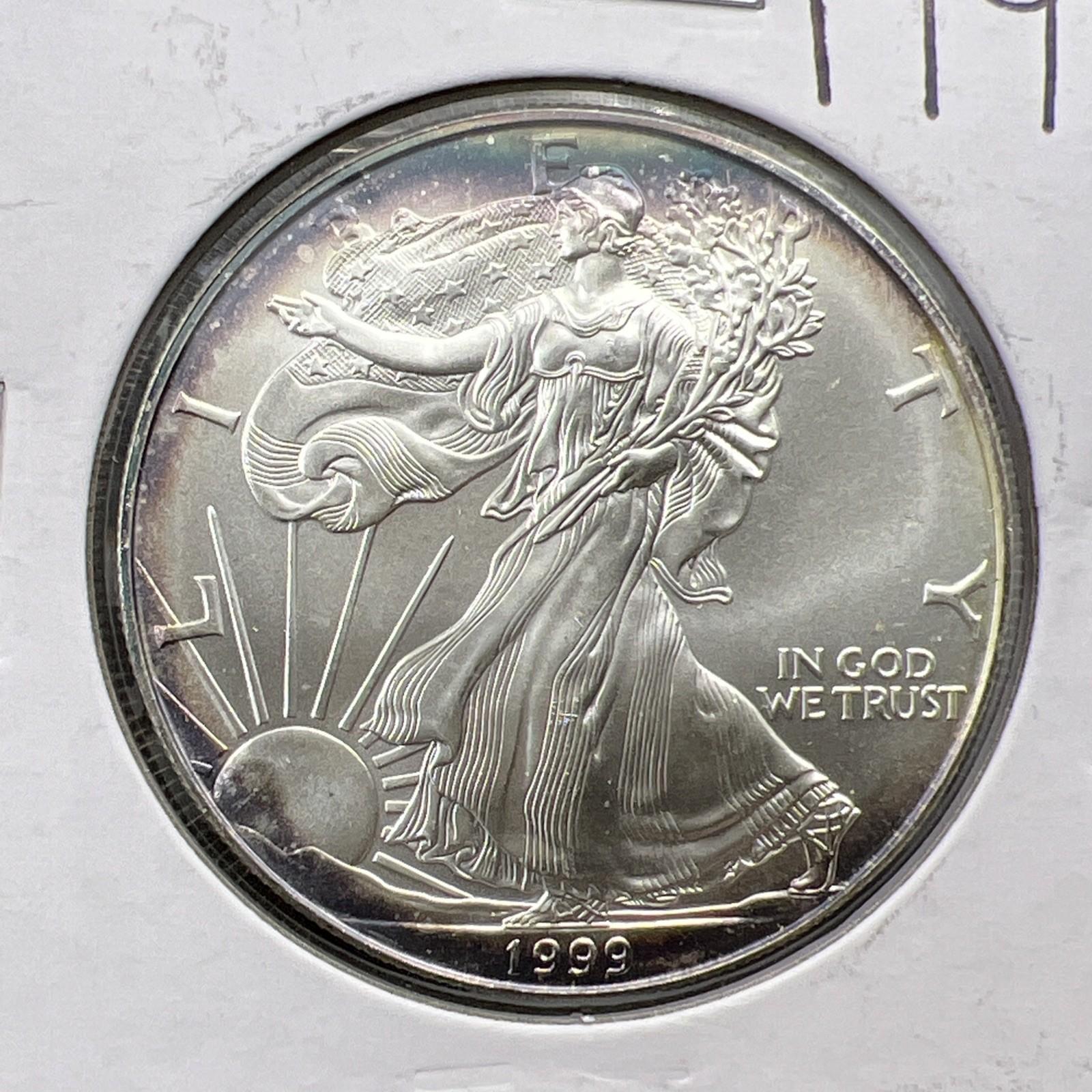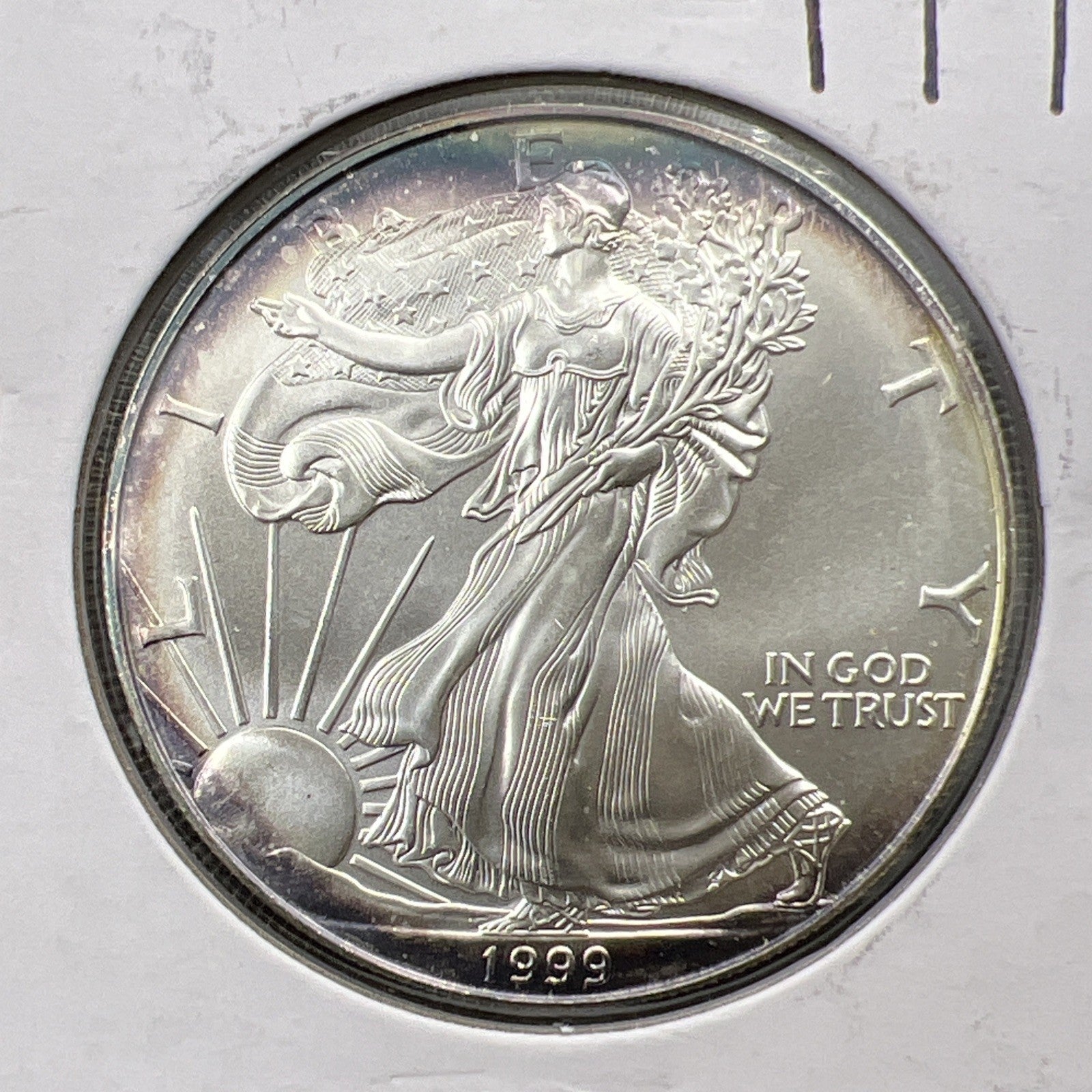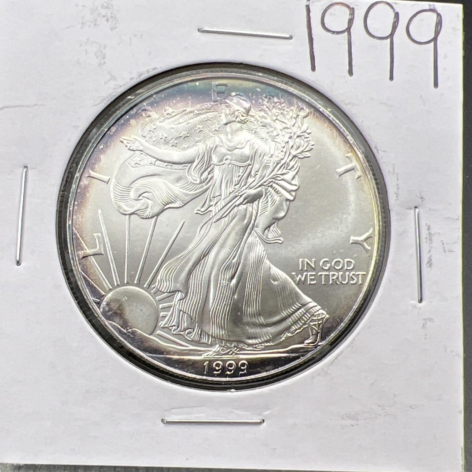 1999 1 Oz ASE American Silver Eagle Coin Gem BU UNC Neat Toning Toner
