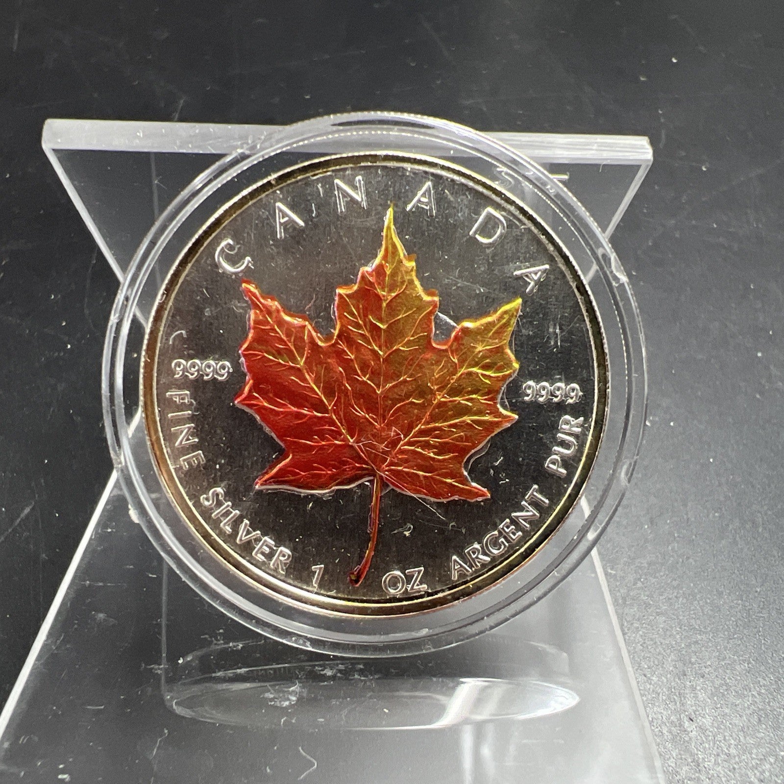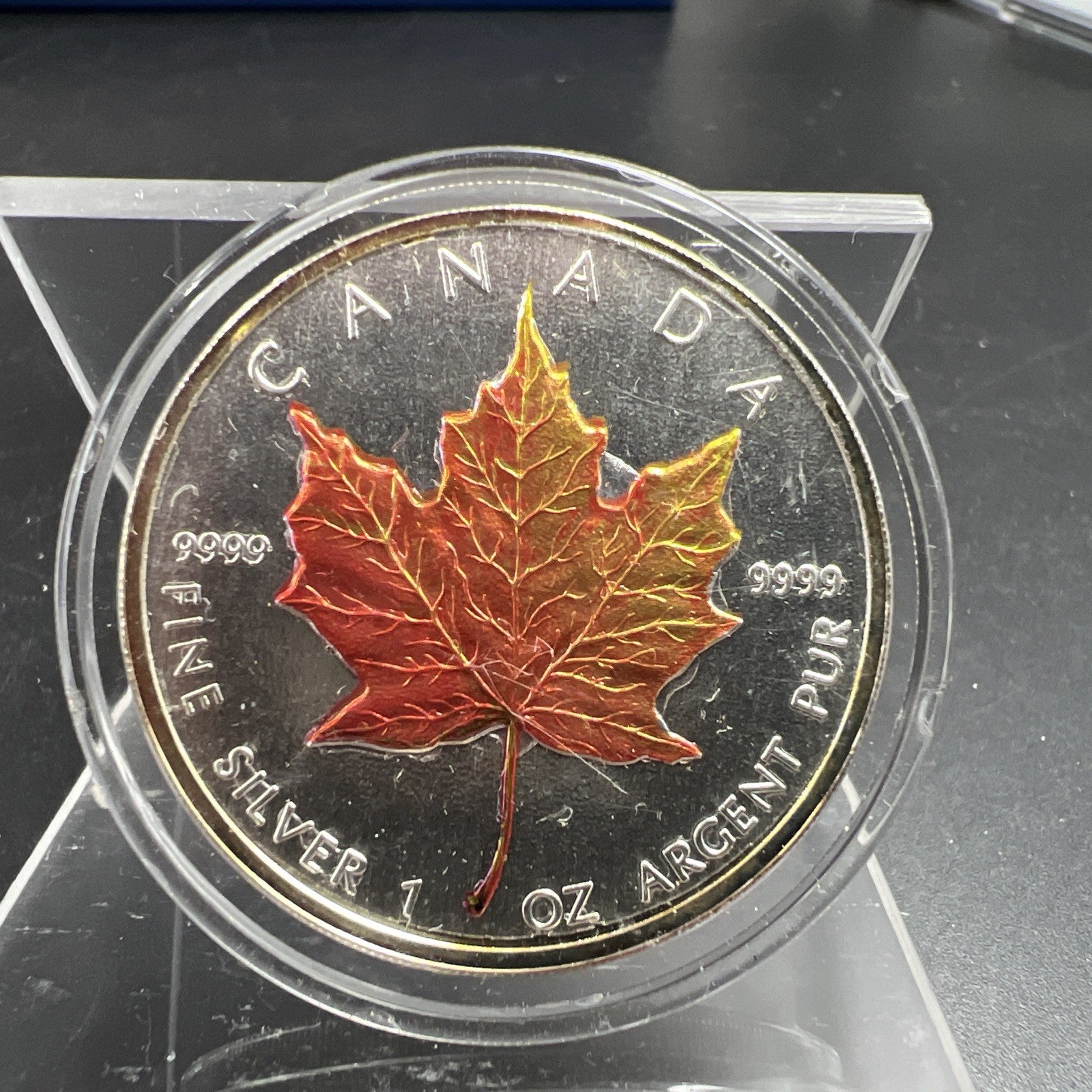 1999 1 oz Silver Maple Leaf Coin Gem UNC Reverse Enhanced & Colorized