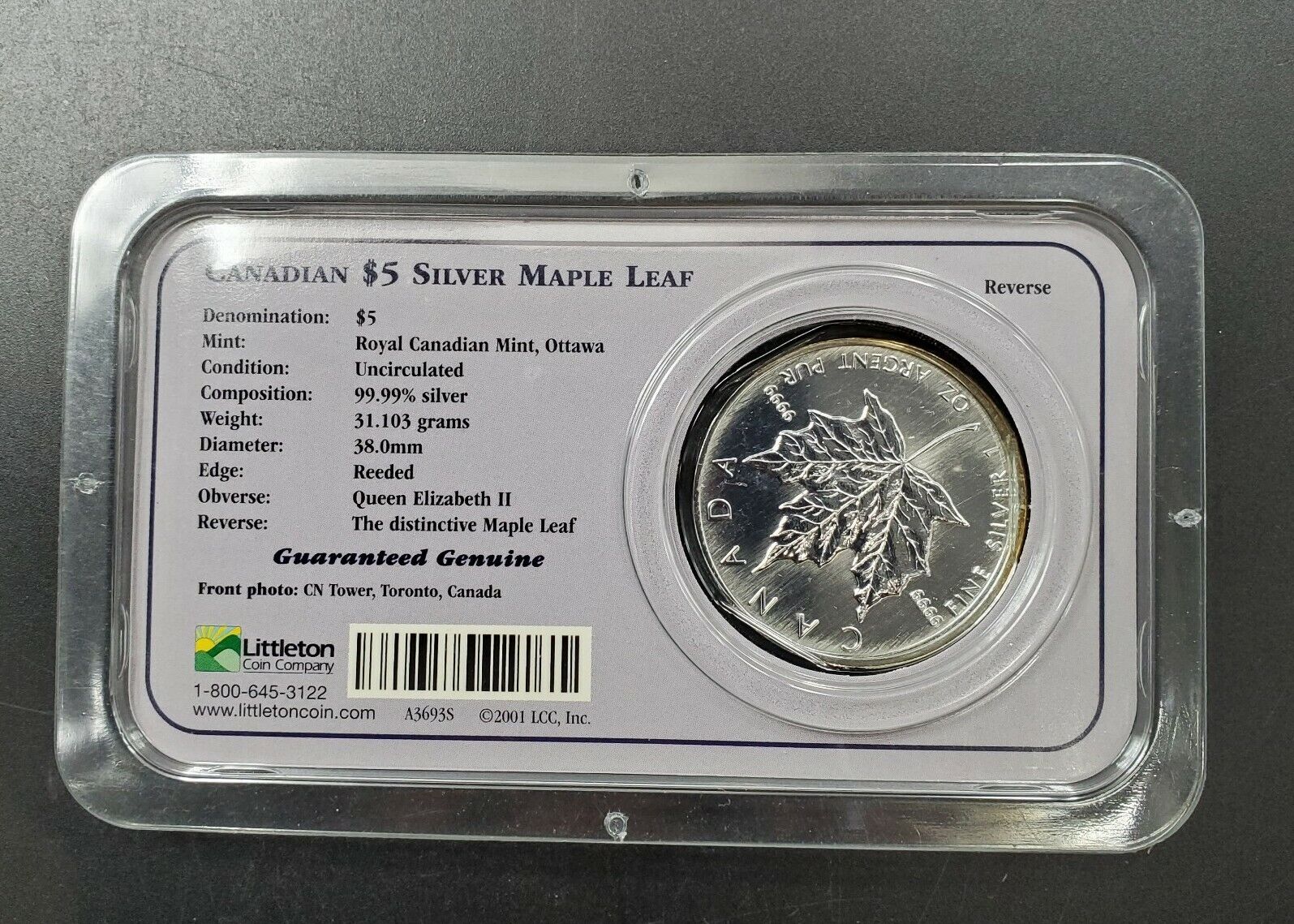 1999 Canada 1 oz Silver Argent Maple Leaf GEM BU UNC Coin Littleton Packadging