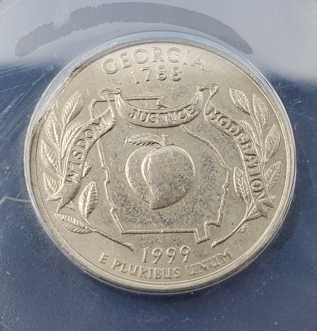 1999-D Washington Quarter GEORGIA Curved Clip Weight 5.60 Grams ANACS AU55.
