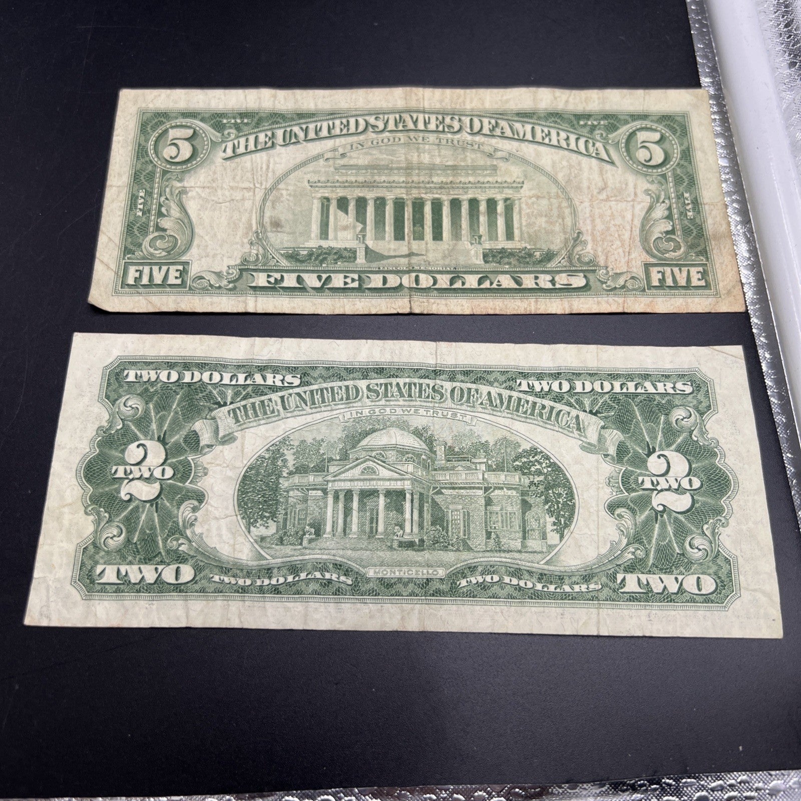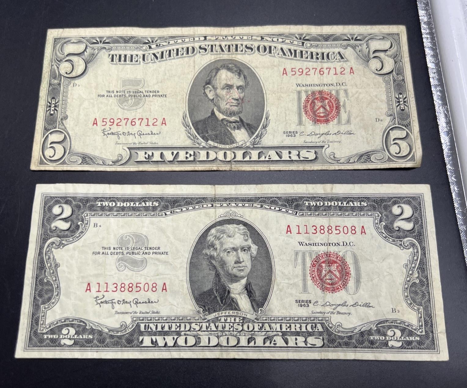2 Note United States Legal Tender Red Seal Set 1963 $2 & $5 Bills VG Circ #508
