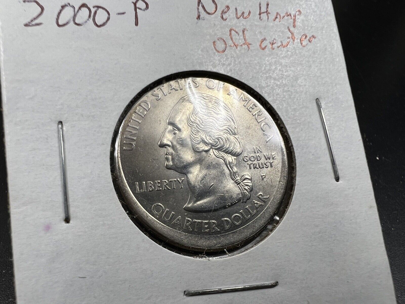 2000 P 25c New Hampshire State Statehood Quarter Coin BU UNC Off Center Error