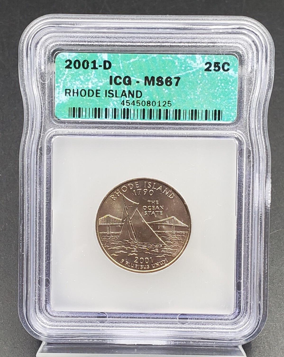 2001 D Rhode Island State Statehood Quarter Coin MS67 ICG #2