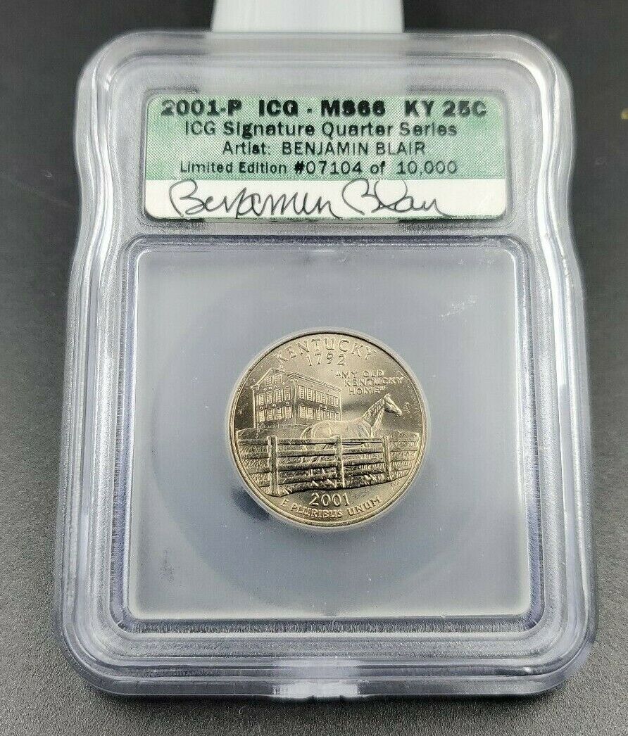 2001 P Kentucky Statehood Quarter Coin ICG Benjamin Blair Engraver Signature BU