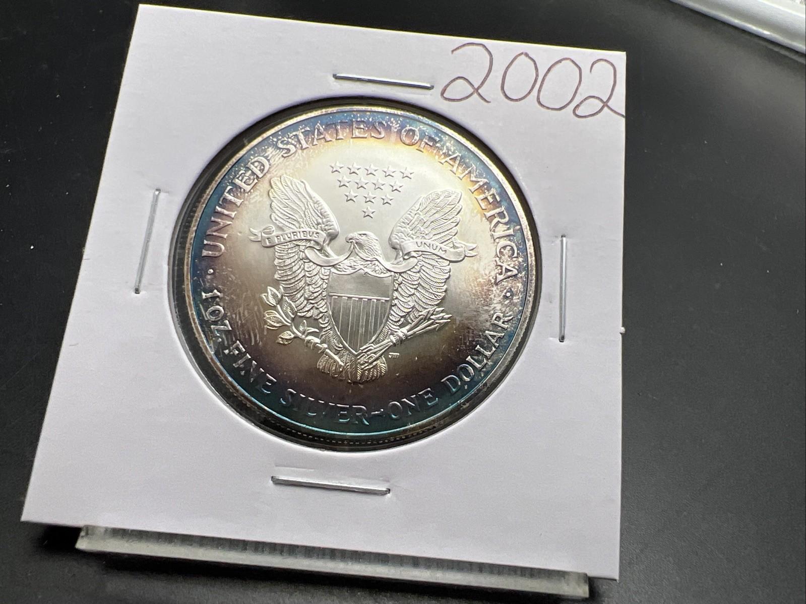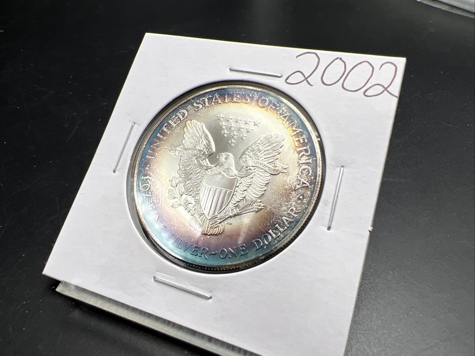 2002 1 OZ American Silver Eagle GEM BU Unc .999 Nice Toning Toner Nearly Halo