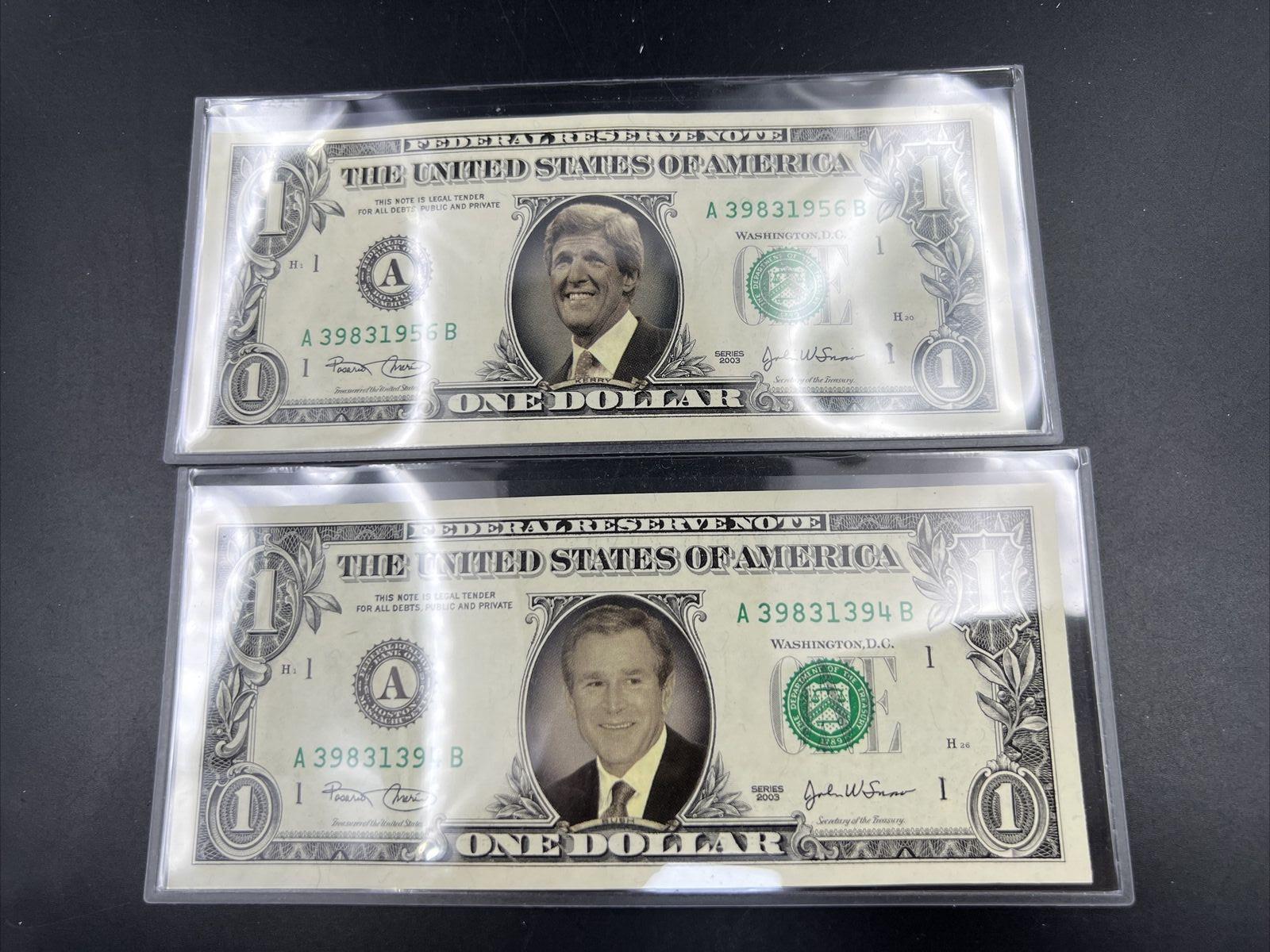 2003 $1 FRN UNC with John Kerry and George Bush pictures 2004 Election Themed