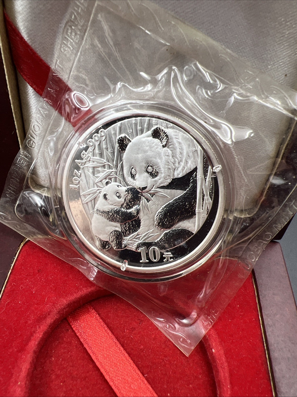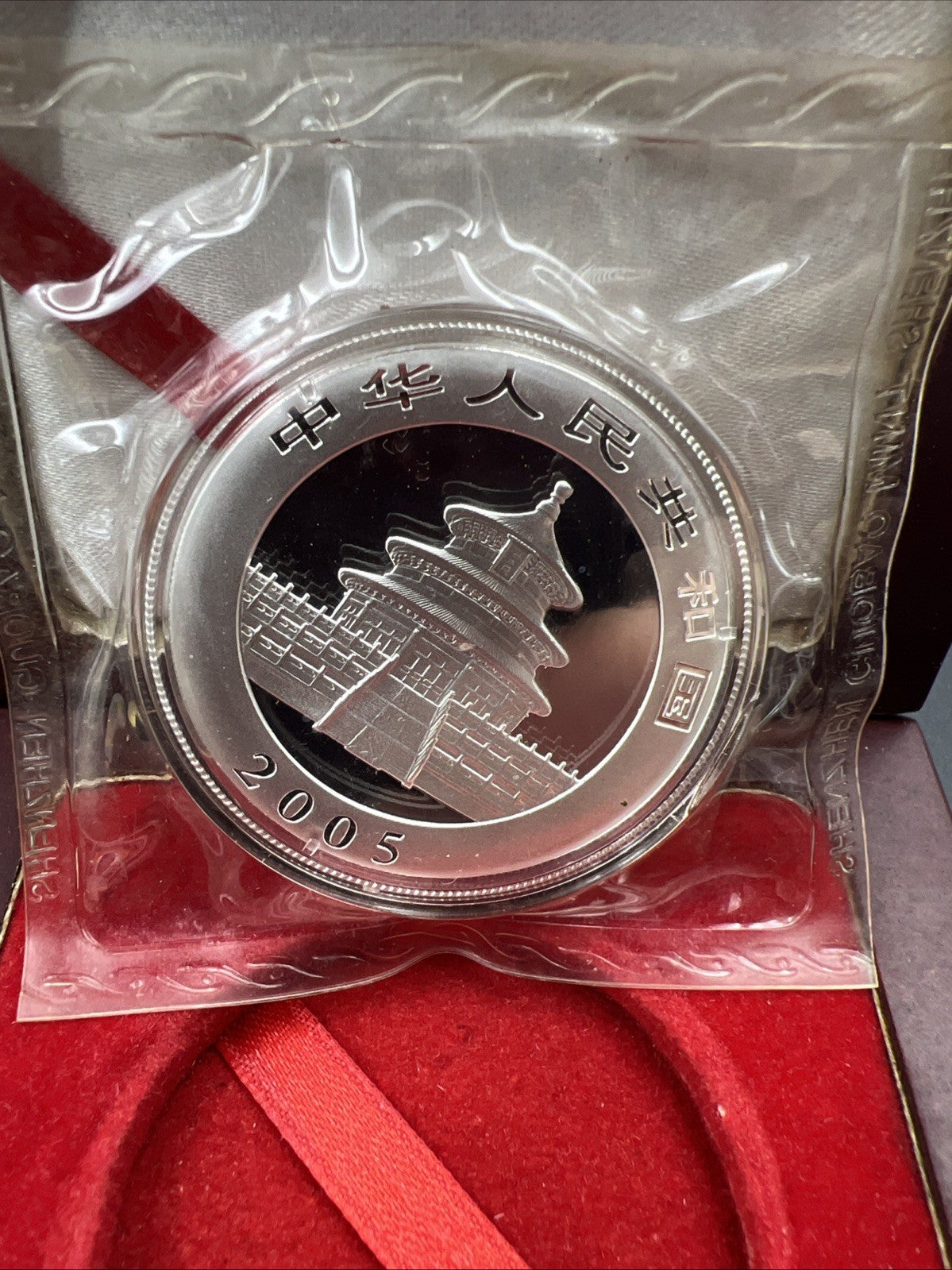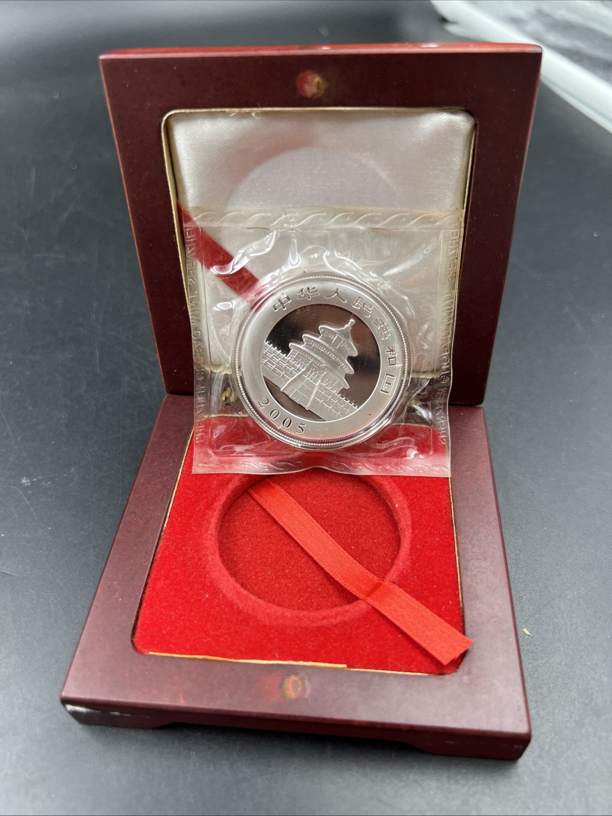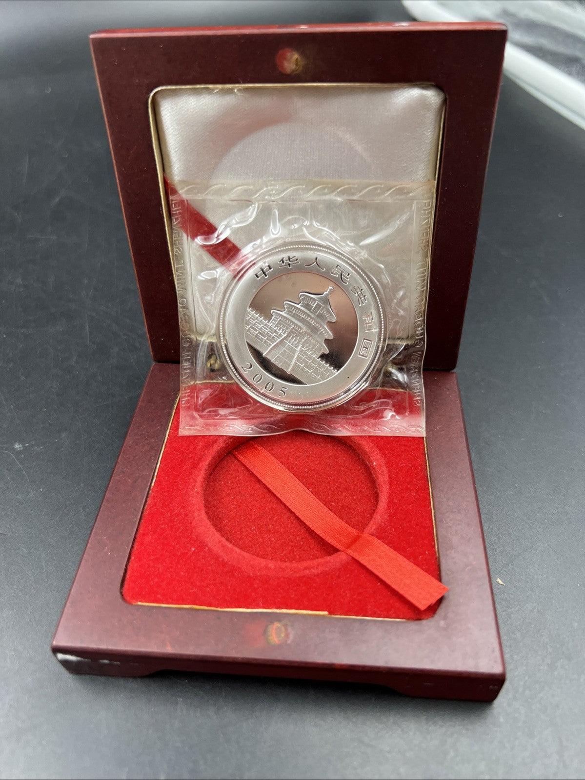 2005 China 10 Yn 1 oz Silver Panda Sealed w/ Wood Box