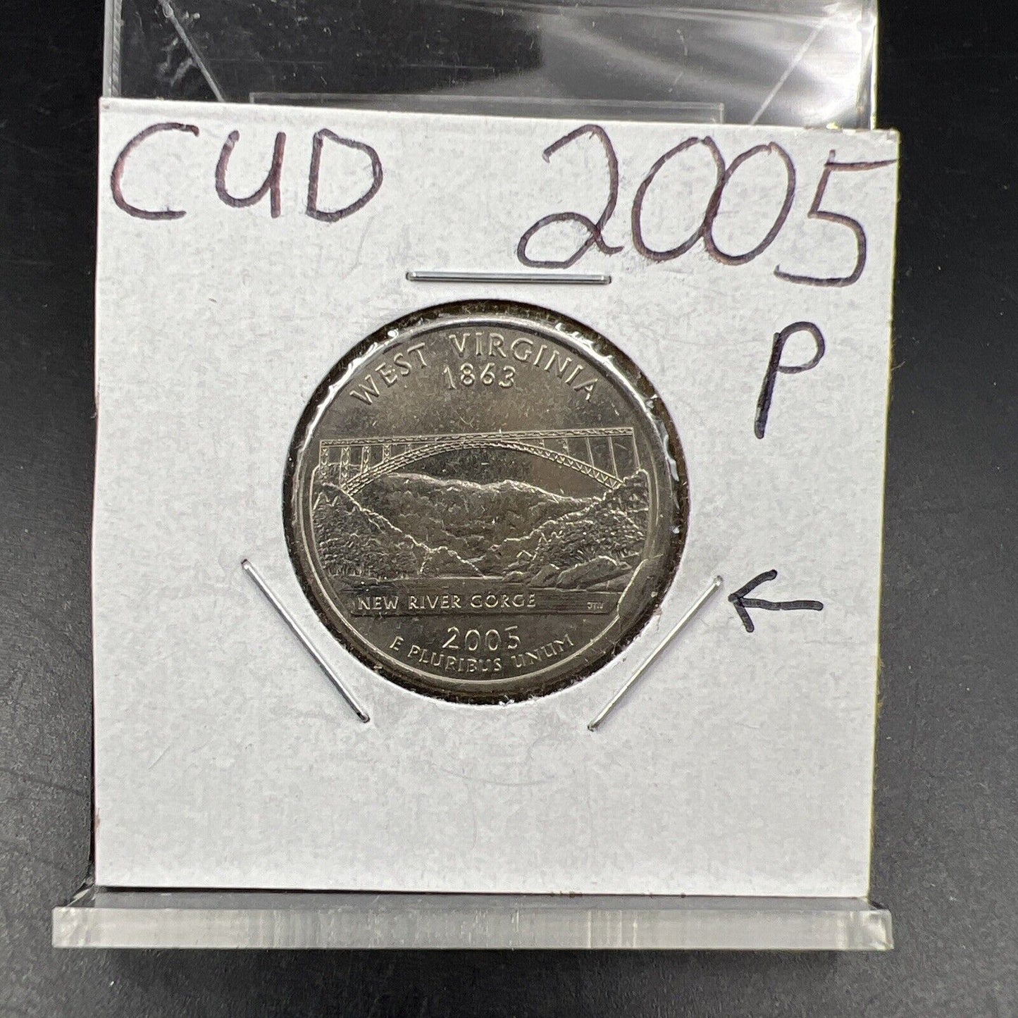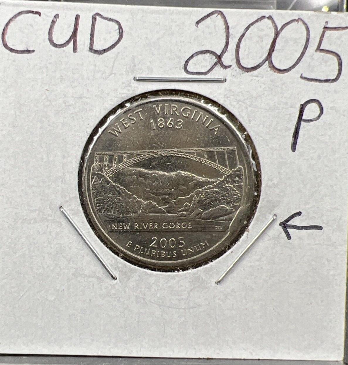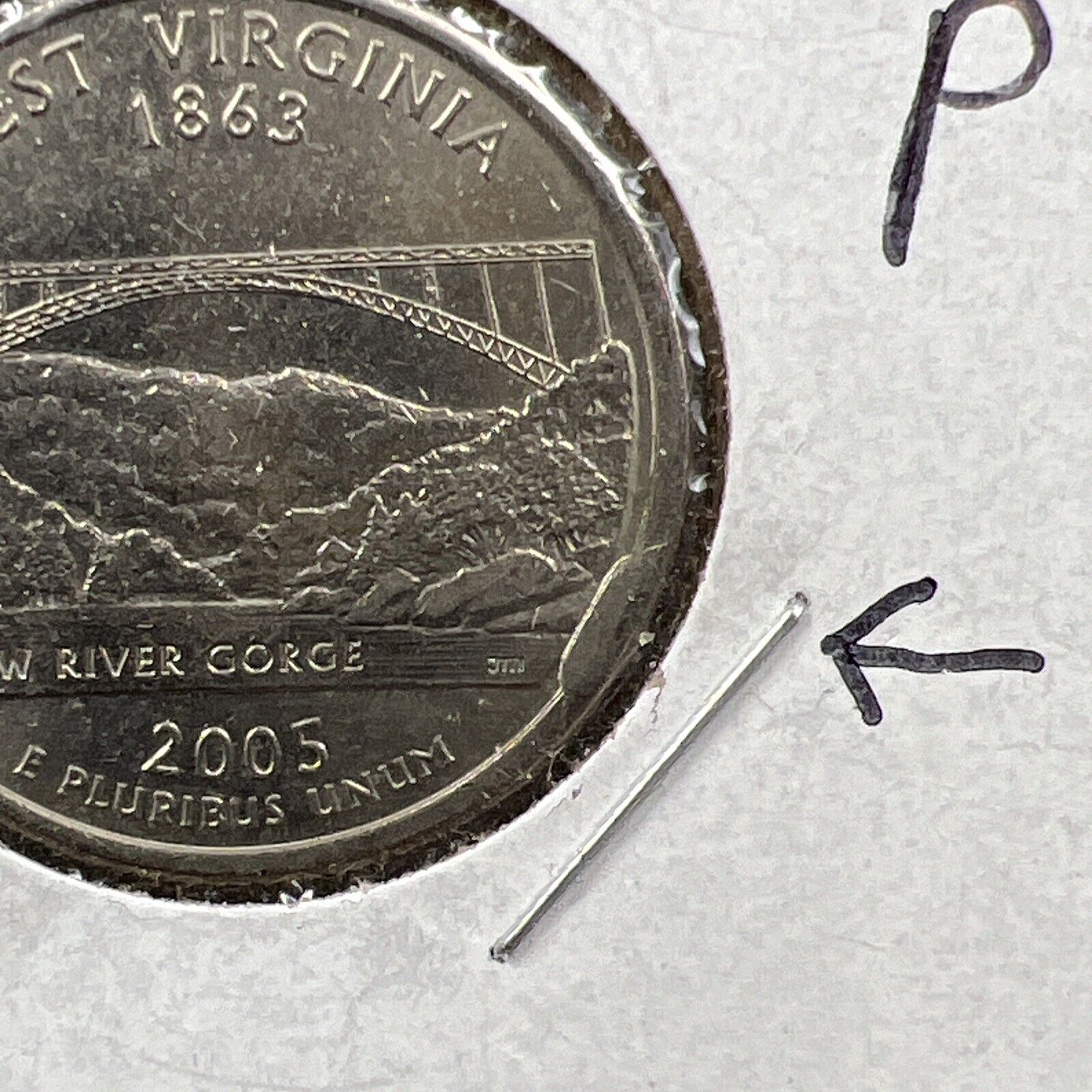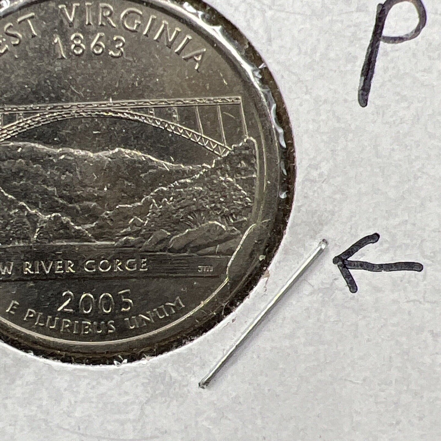 2005 P 25c West Virginia Statehood Quarter Coin Die Cud Error AU About UNC