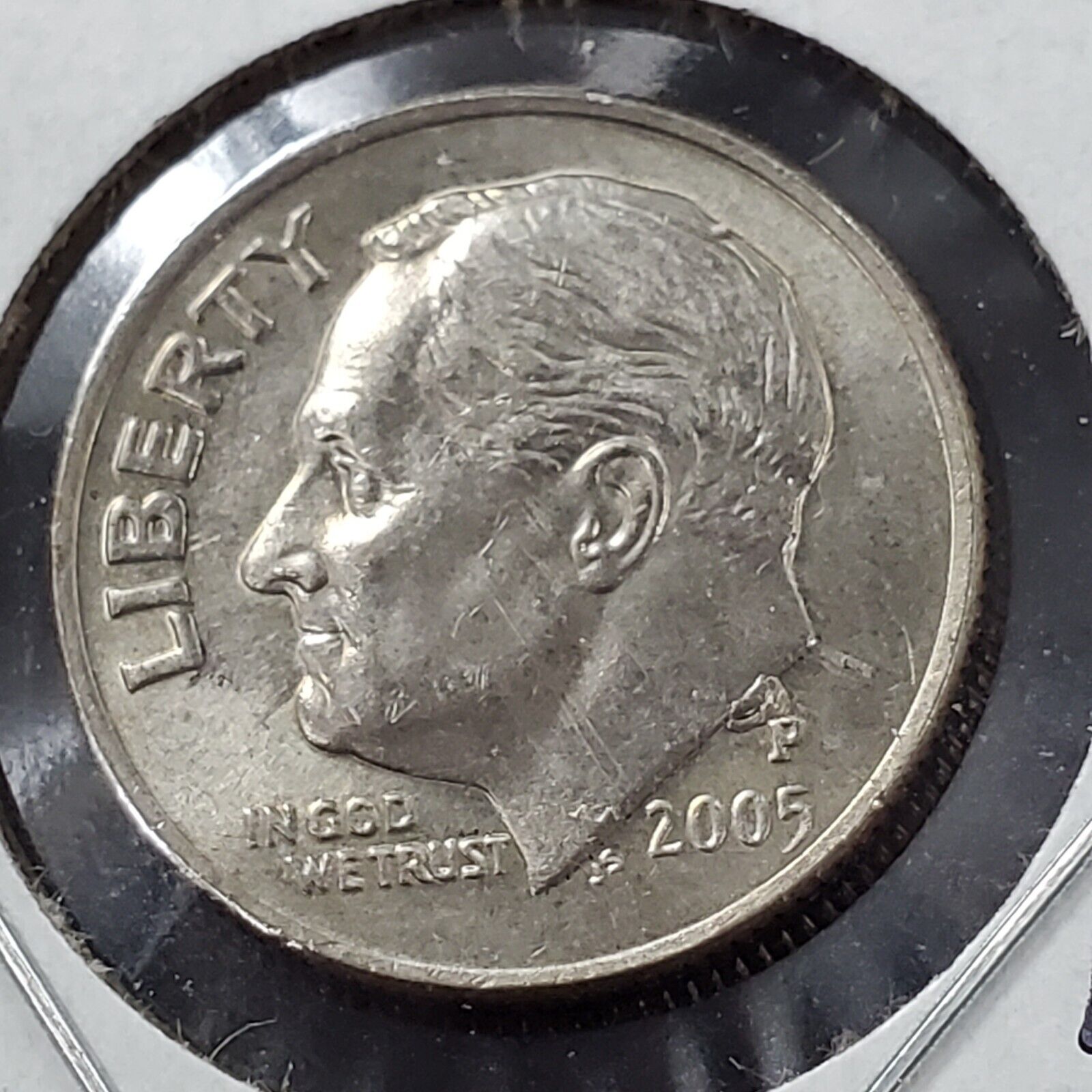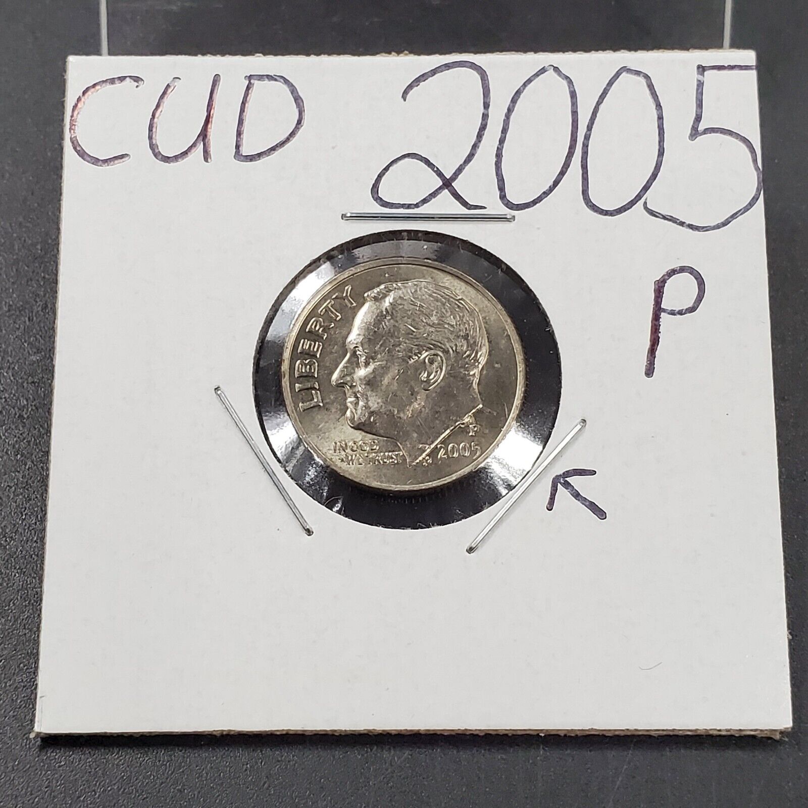 2005 P Roosevelt Dime Coin CUD Die Creak AU About UNC