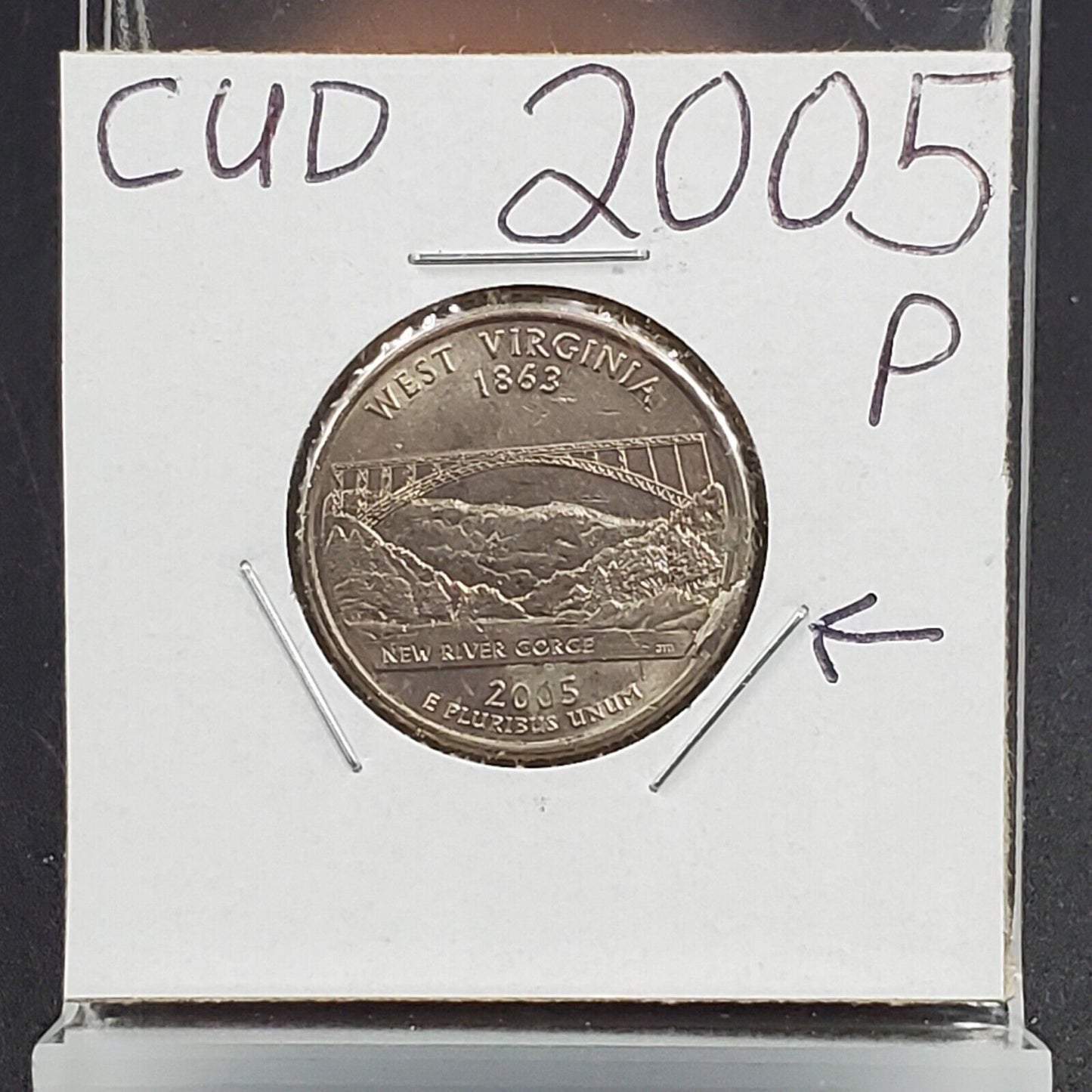 2005 P West Virginia State Quarter Clad 25c Coin CUD Error Reverse AU Circ