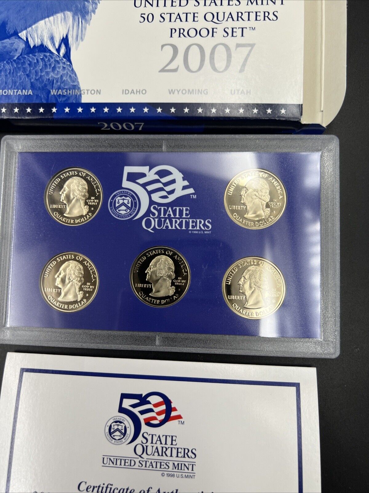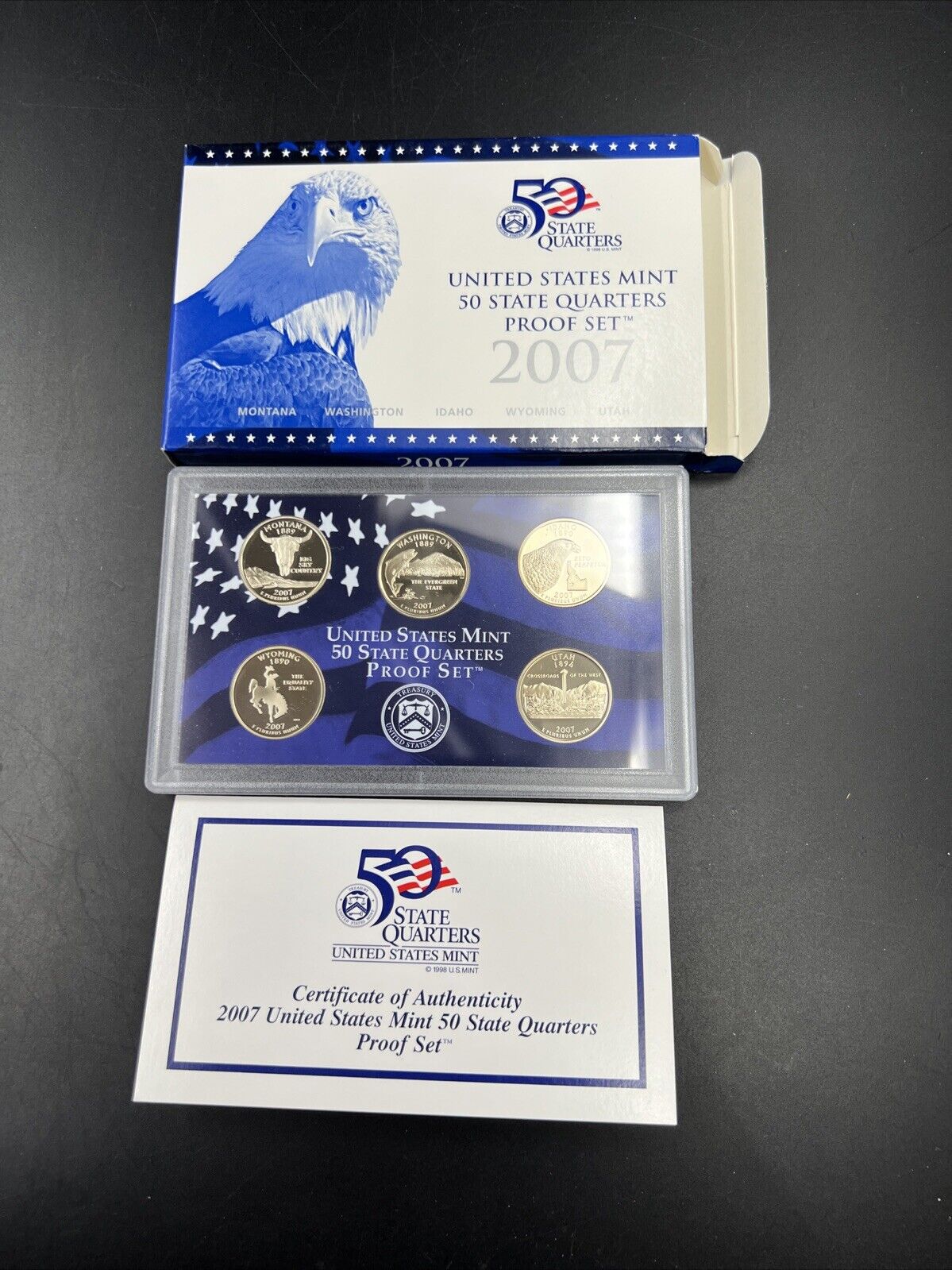 2007 S US Mint Statehood Quarter Proof CLAD 5 Coin Set Box COA OGP