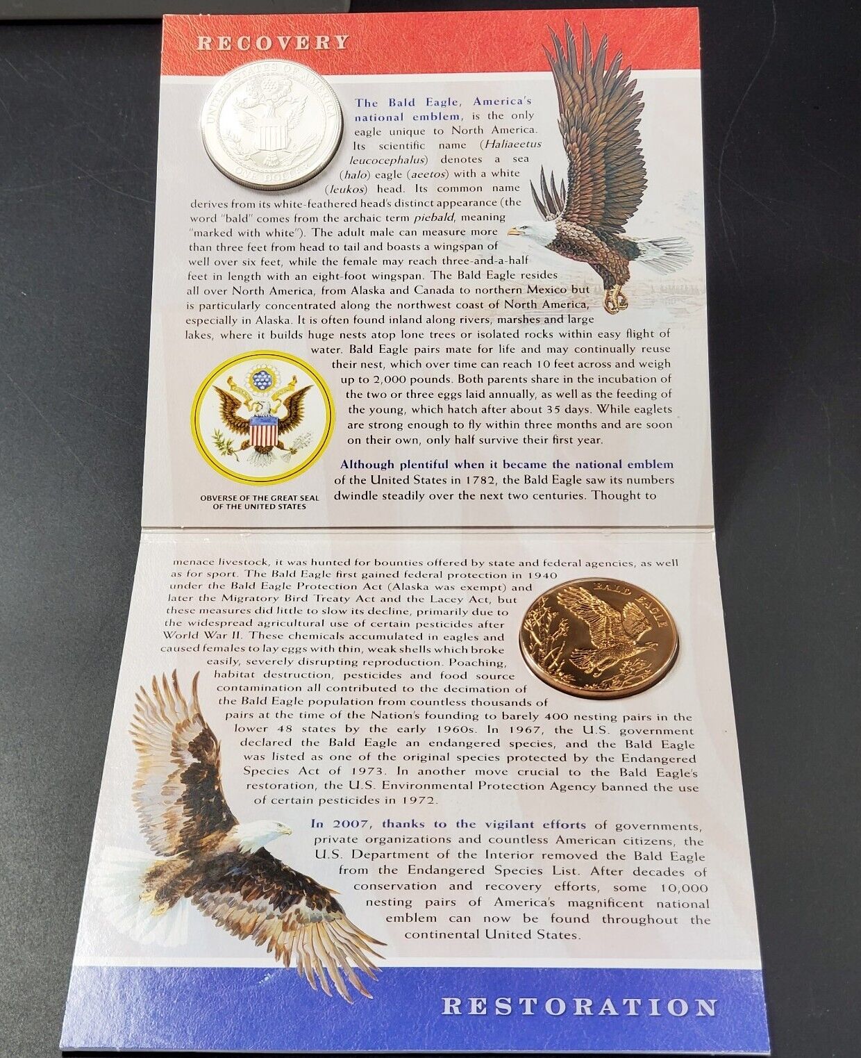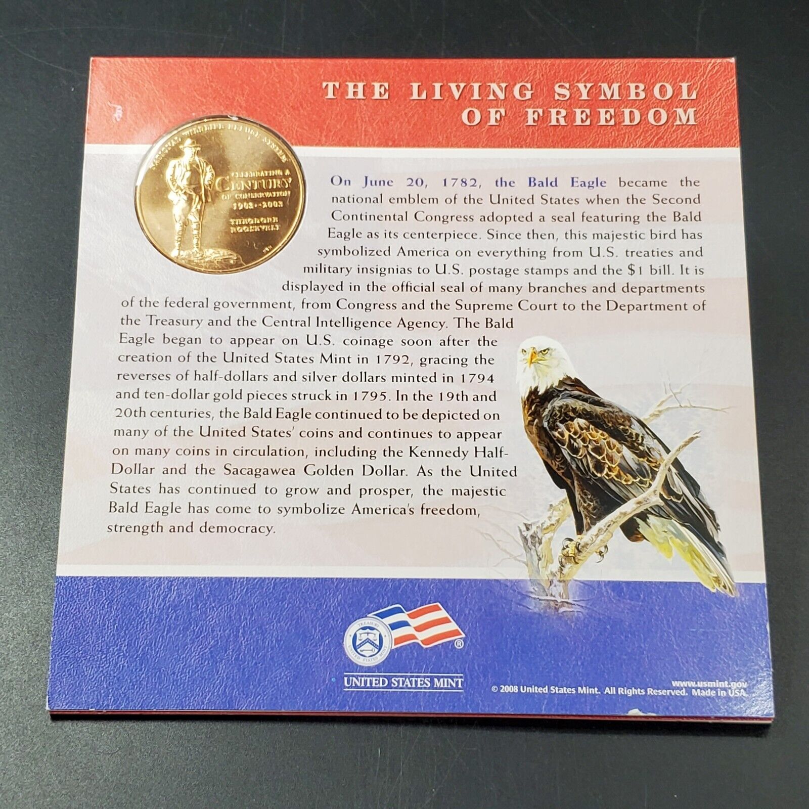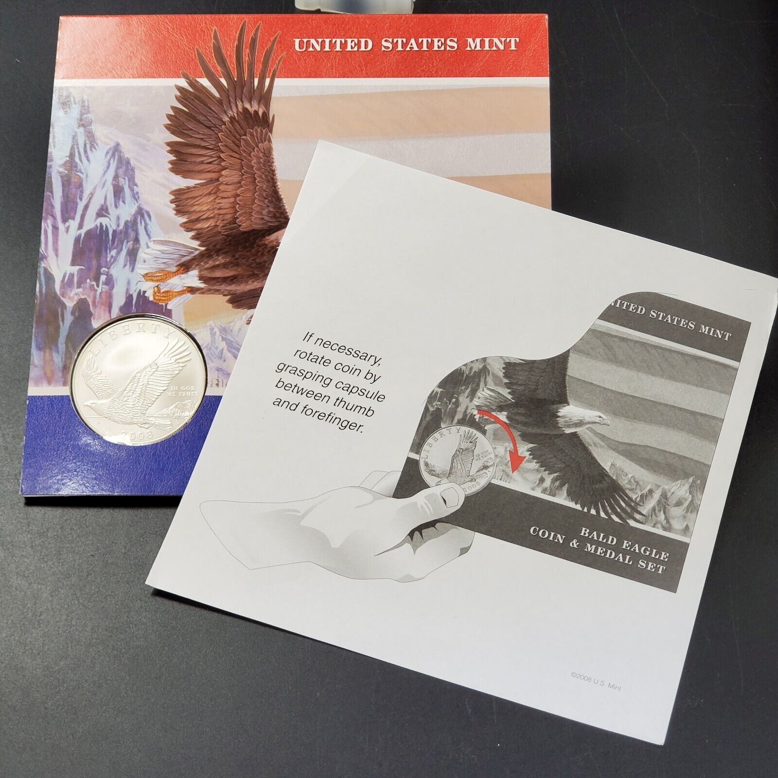 2008 BALD EAGLE COIN & MEDAL SET OGP "Grap between thumb & forefinger" US Mint