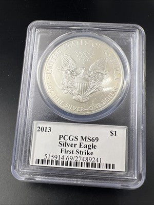 2013 1 Oz American Silver Eagle Coin PCGS MS69 Mercanti Signature Label #241