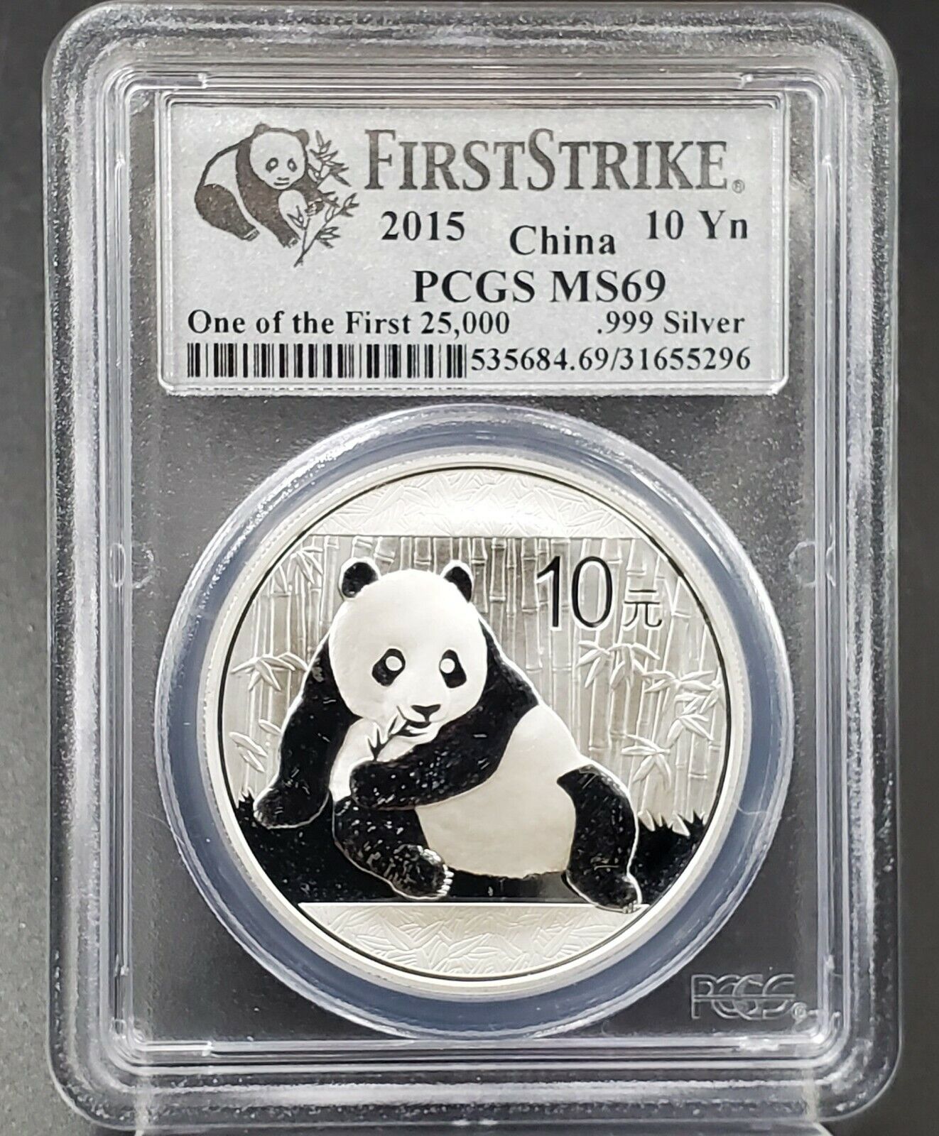 2015 China 10 Yn 1oz Silver Panda PCGS MS69 First Strike One of the First 25,000