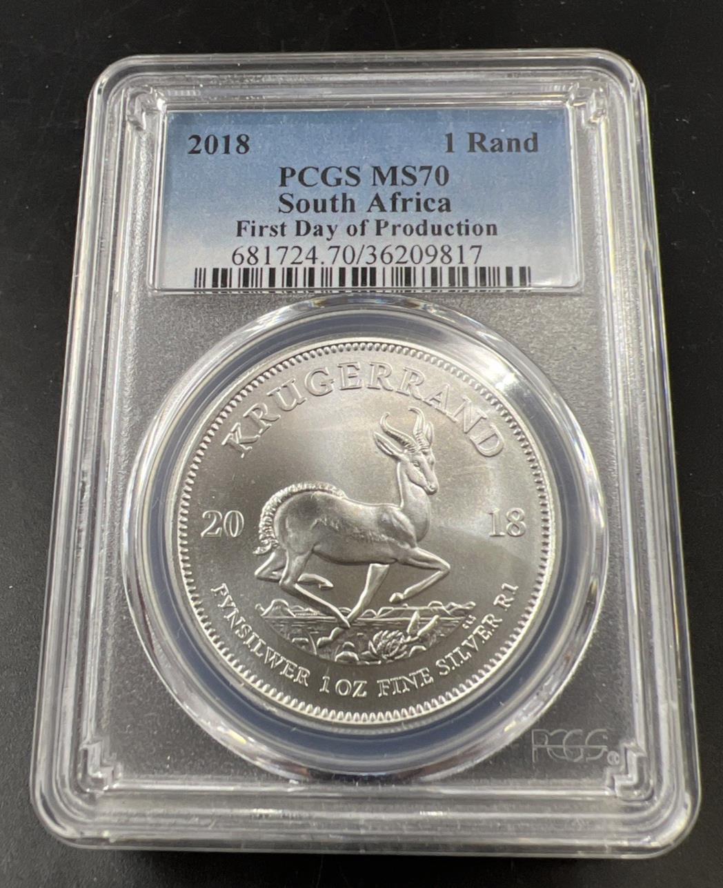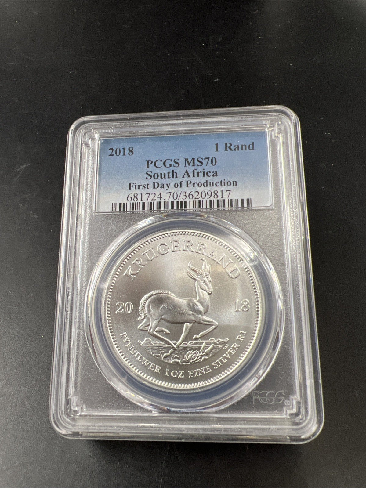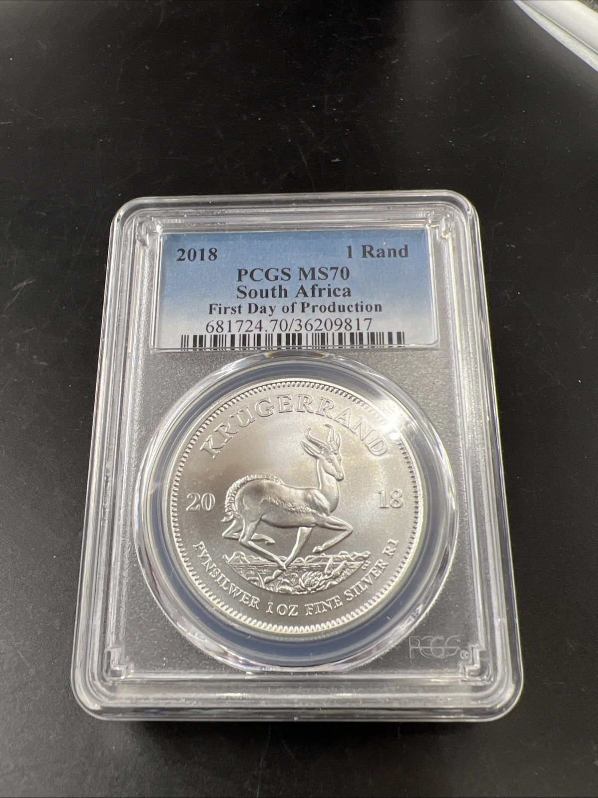 2018 South Africa 1 oz Silver Kruggerand Coin PCGS MS70 First Day of Production
