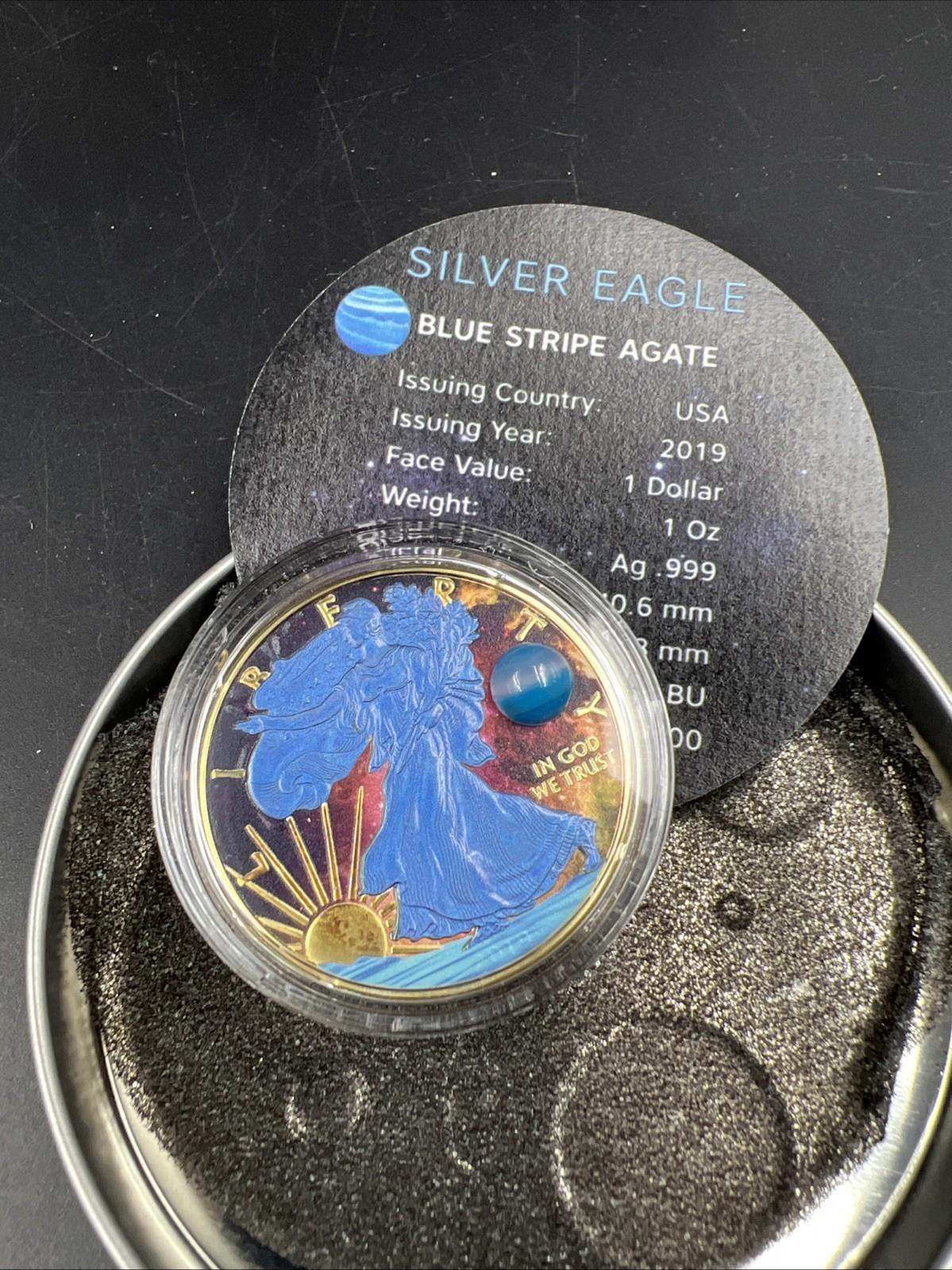 2019 1 Oz ASE American Silver Eagle With Striped Blue Agate Enhancement