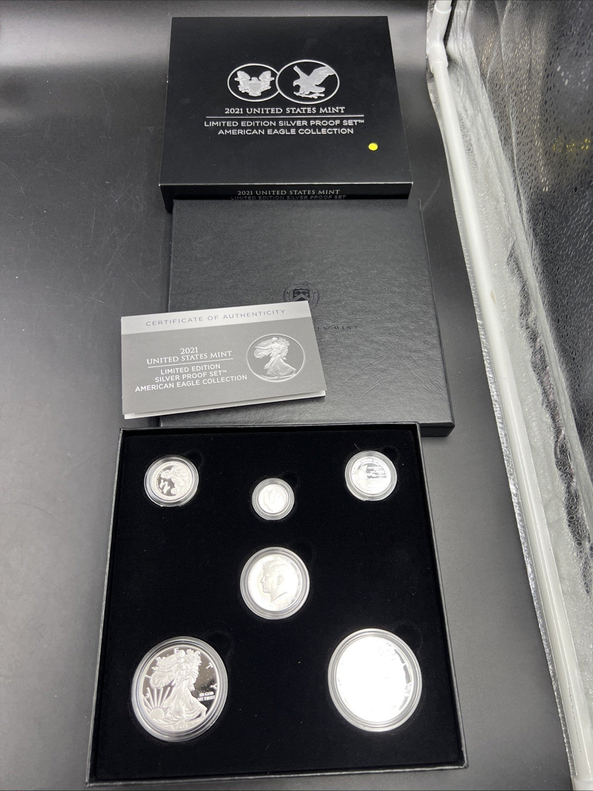 2021 6 Coin Limited Edition Silver Proof Set w/ Type 1 & 2 ASE Silver Eagles #D