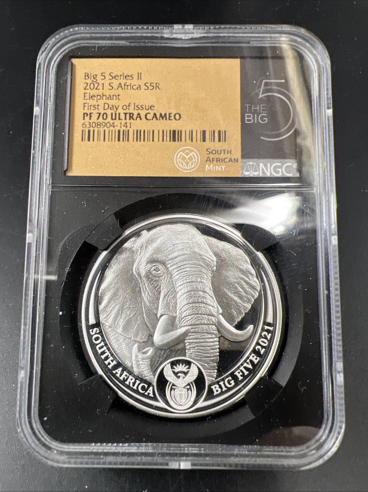 2021 S South Africa Big 5 Series Elephant 1 oz Silver Coin PF70 UCAM NGC