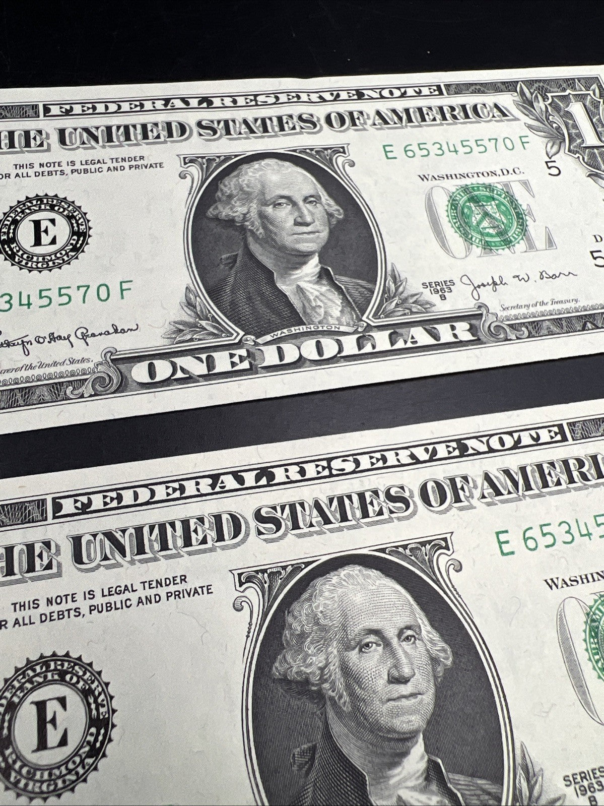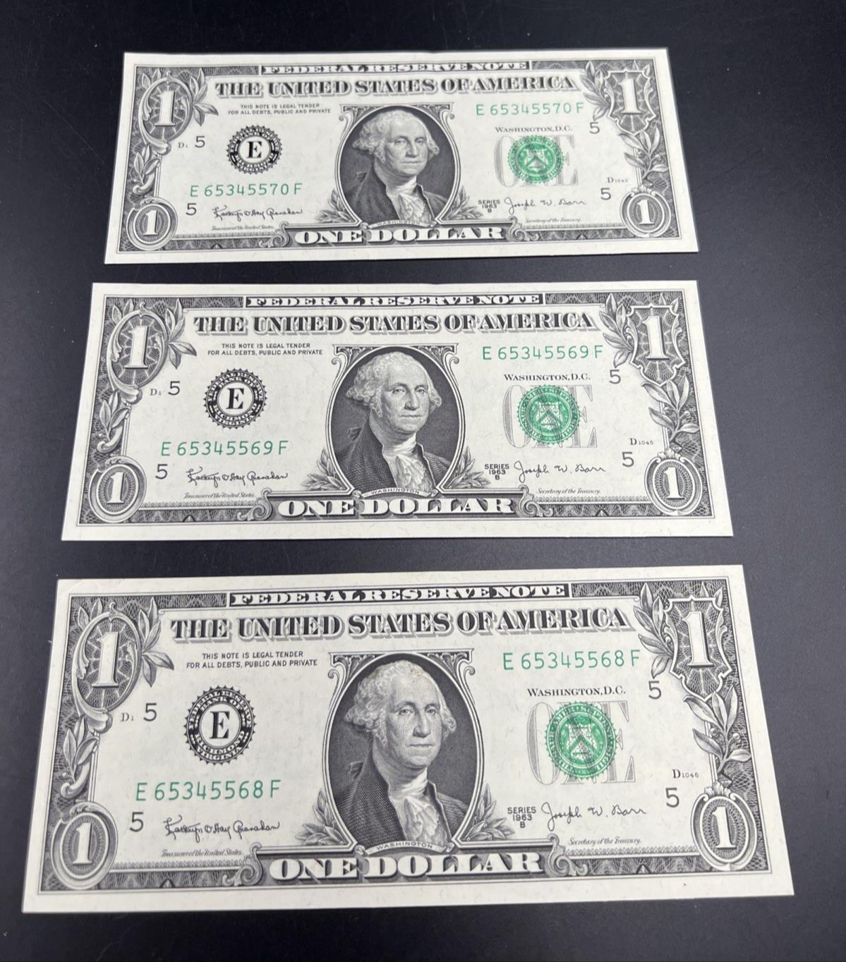 3 Consecutive 1963 B Barr $1 FRN Federal Reserve Notes UNC #68
